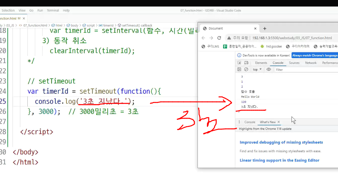 -> 새로고침해서 3초 지나야 3초 지났다 뜸