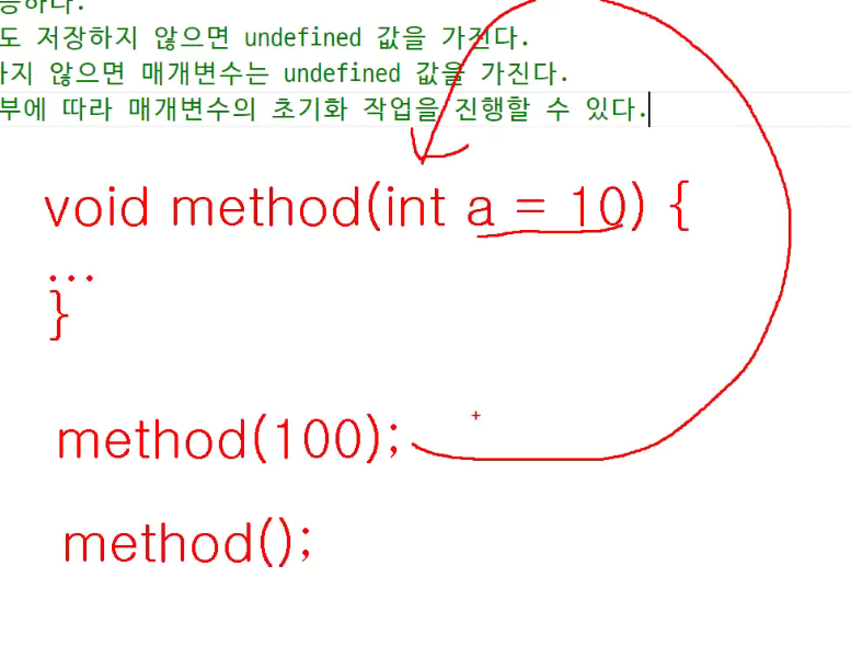 -> 디폴트 매개변수 : 전달값에 따라 초기변수 잡을 수 있음