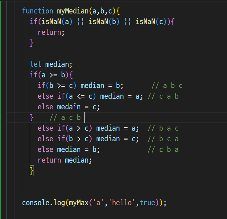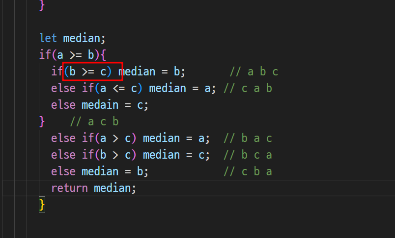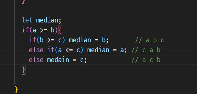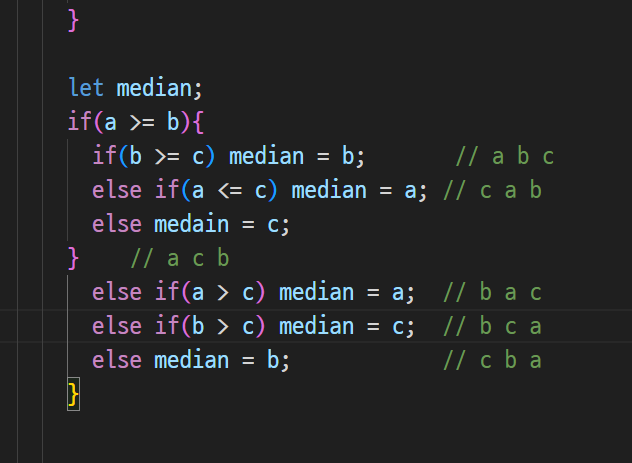 -> a가 중앙값인 경우 if안에 싹 적고