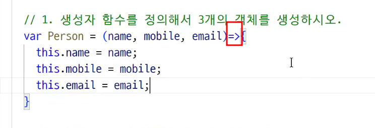 -> 화살표 익명함수 (생성자 함수는 화살표 안됌)