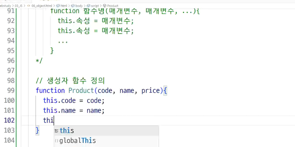자바> 현재 객체를 의미하는 키워드 (this)