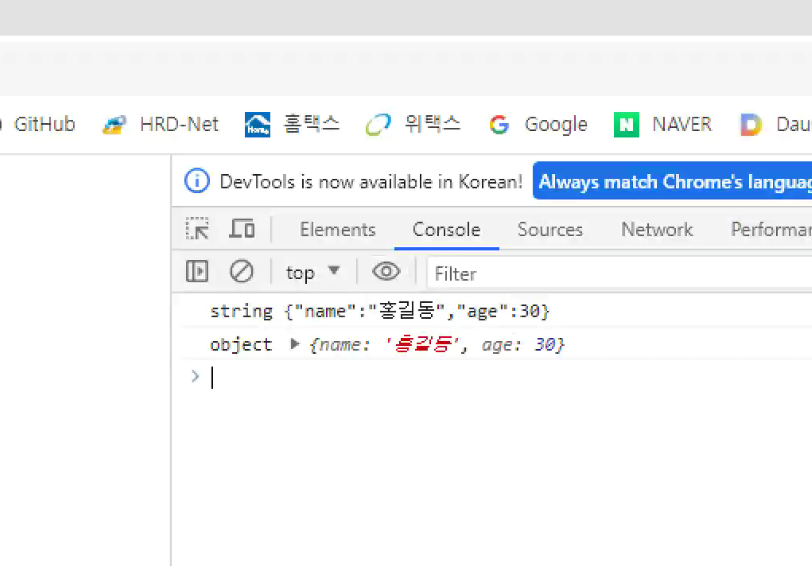 -> object타입이고 parsing이 되어있는 console창