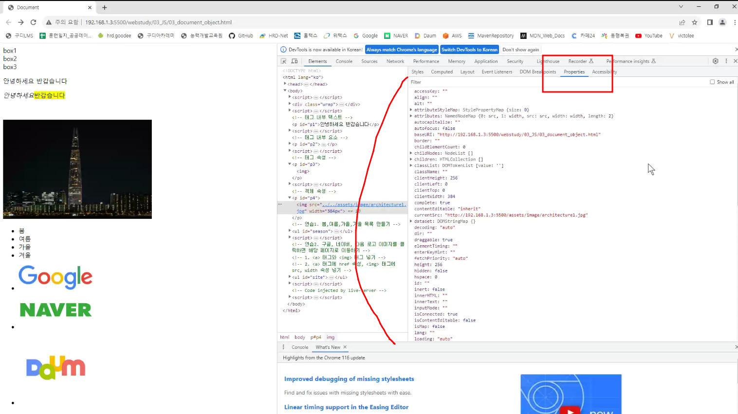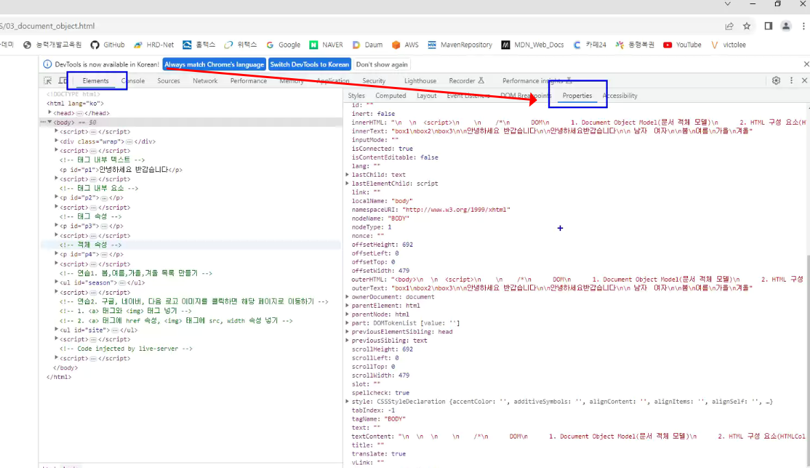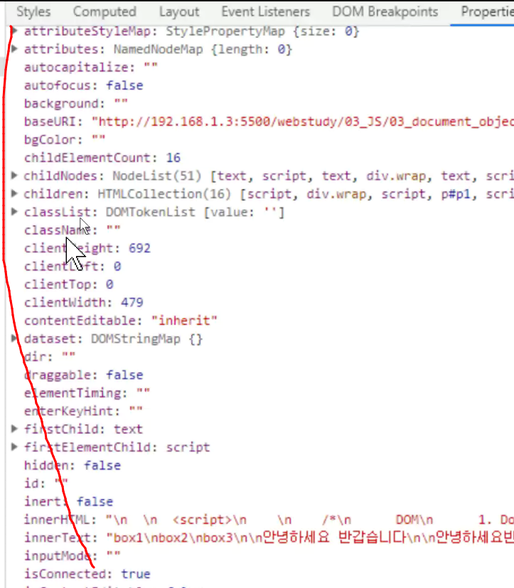 -> properties(문서 객체)