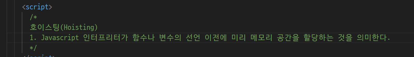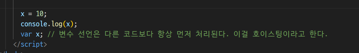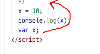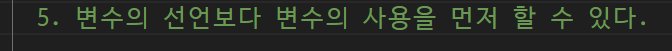 -> 선언도 안했는데 미리 할당한다는 것? (선언을 안했는데 있다는 것?) 나중에 선언해도 된다