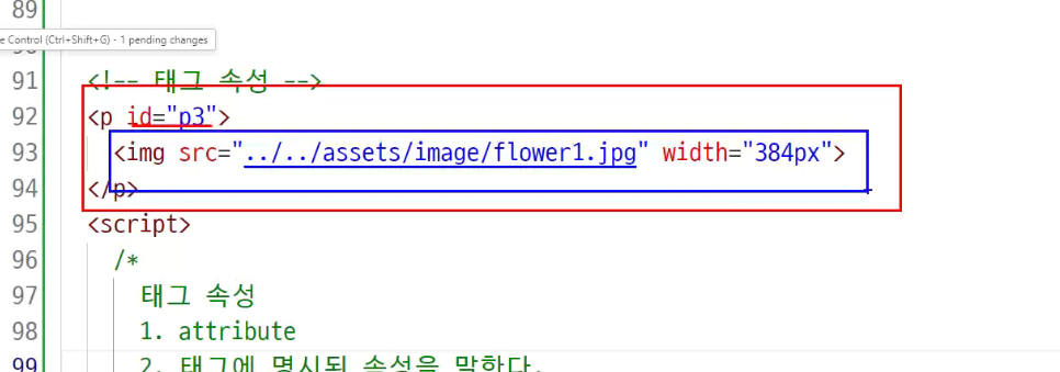 이미지 태그 : attrvitue 는 2개(src , img)