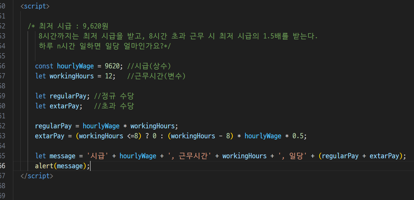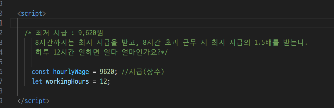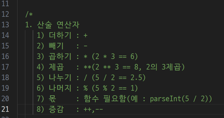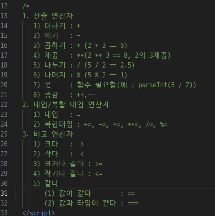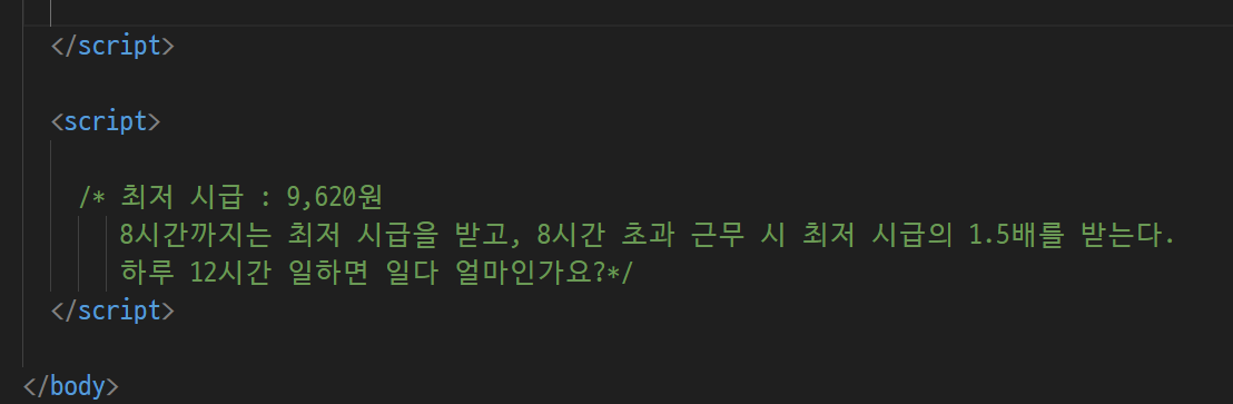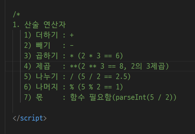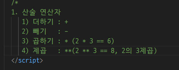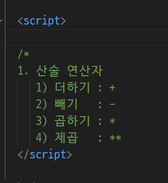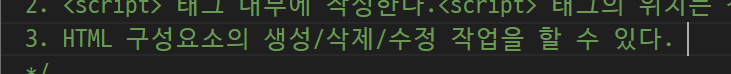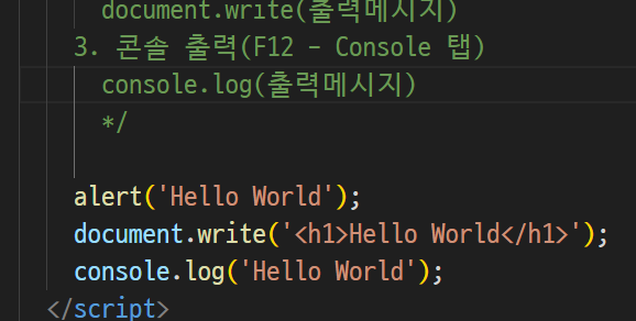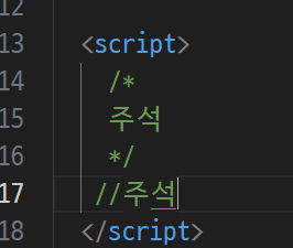 -> 한줄짜리 주석, 여러줄 주석