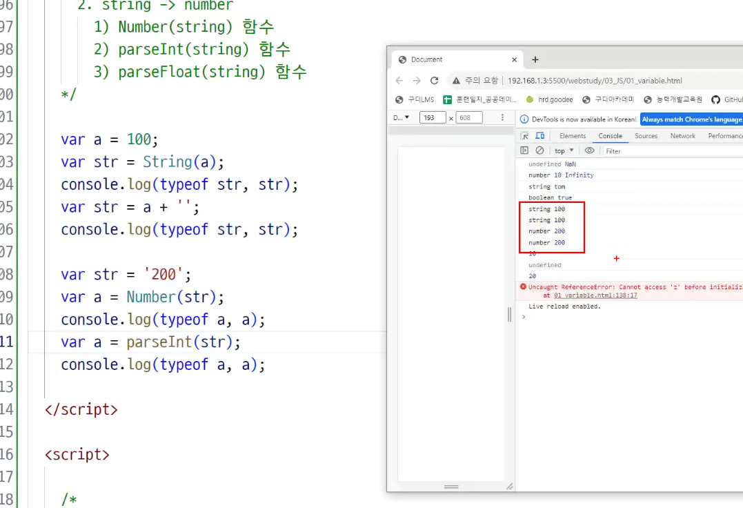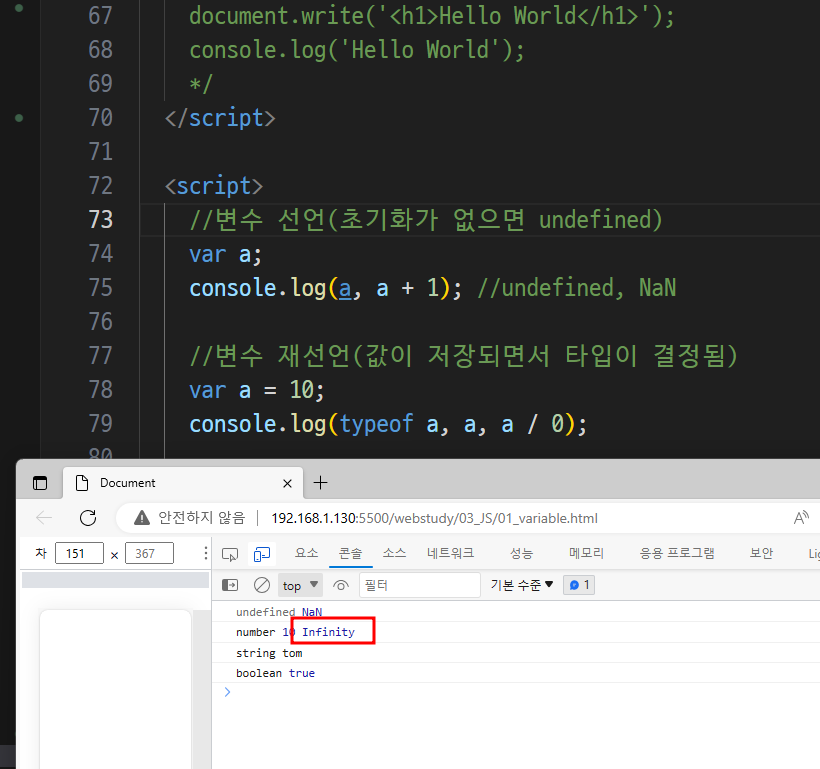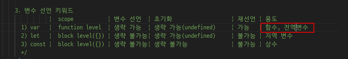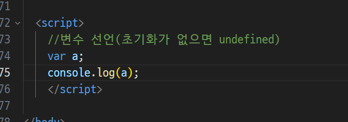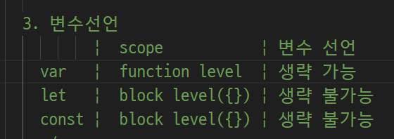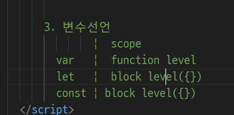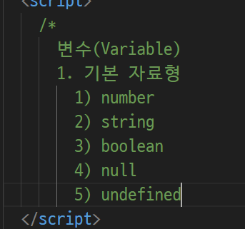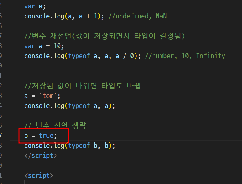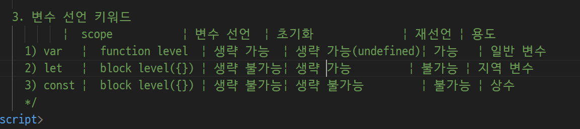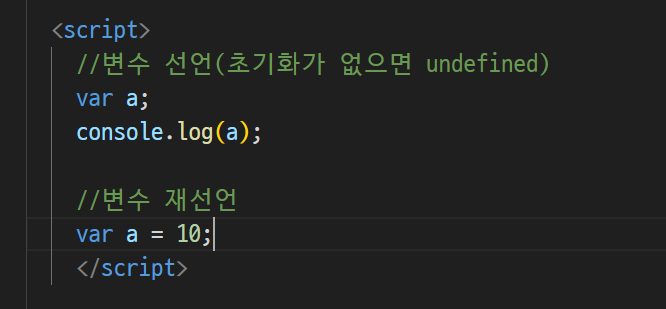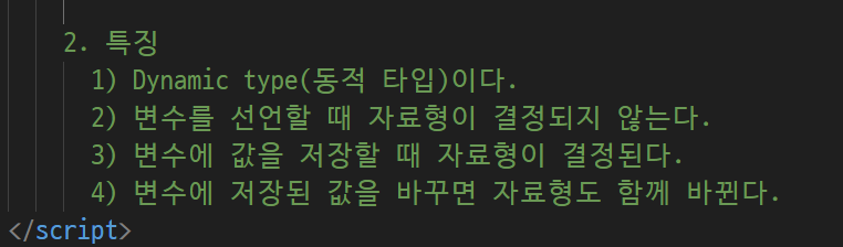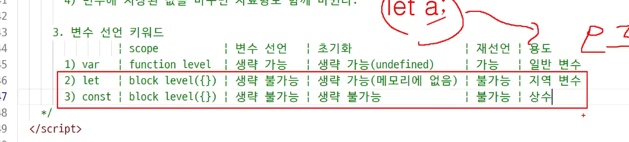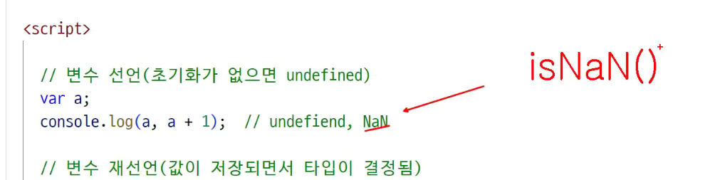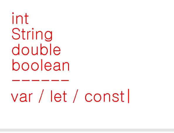 -> 자바 스크립은 이런게 없음 ( int = a 정수 a다 선언자체가 없음)