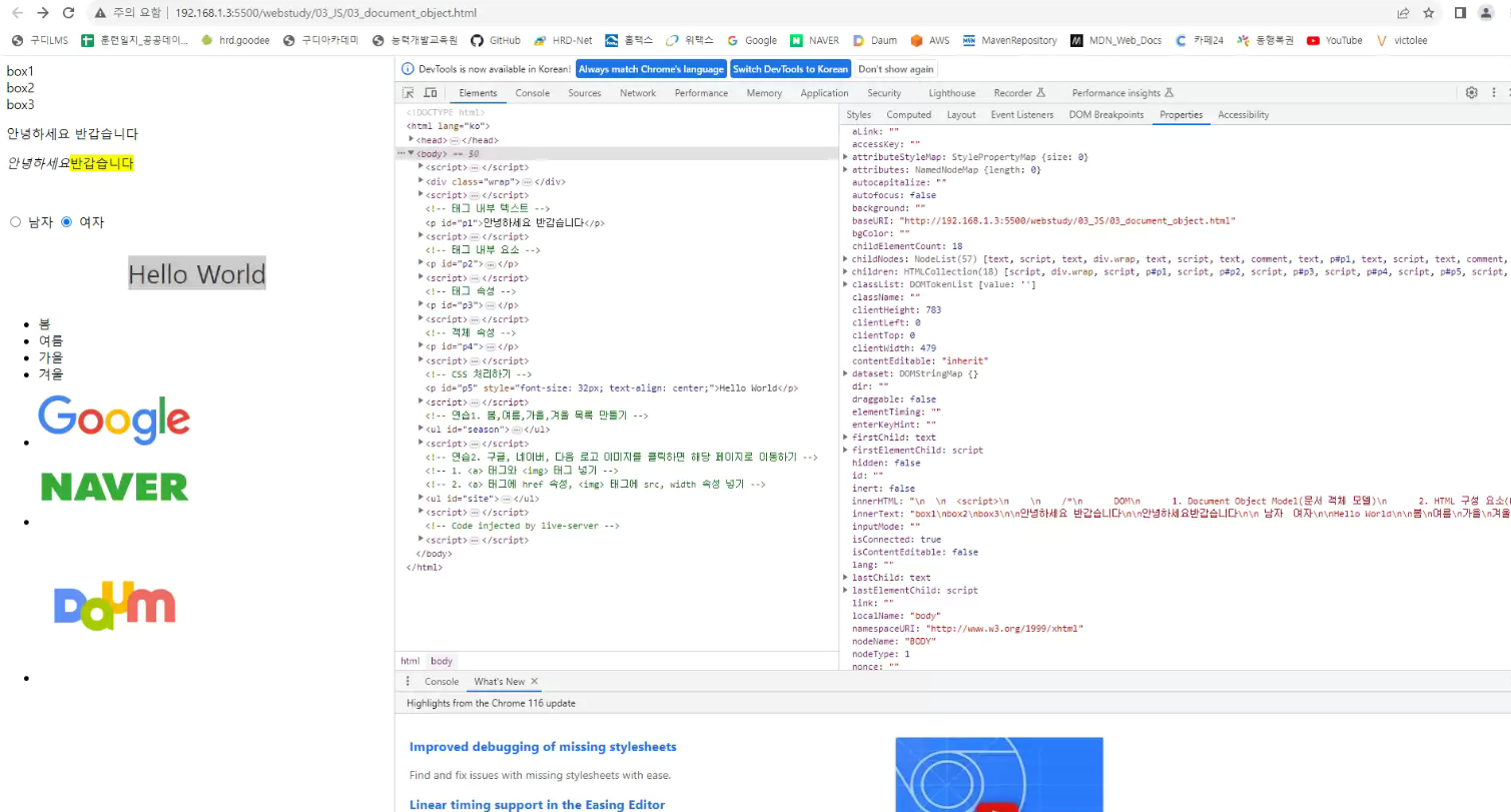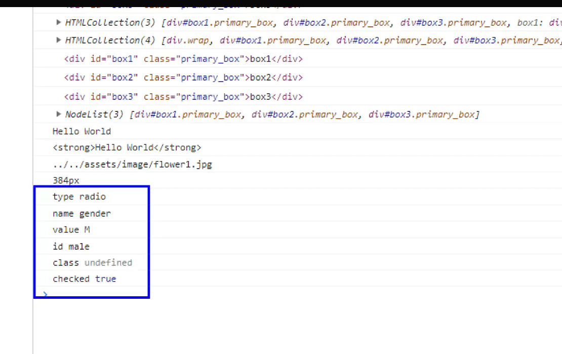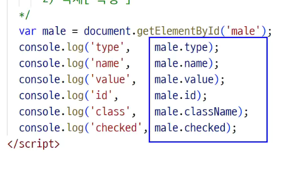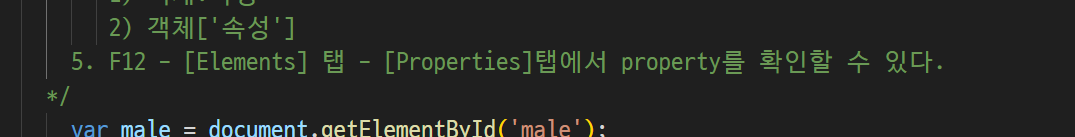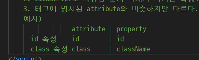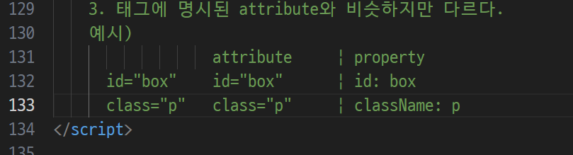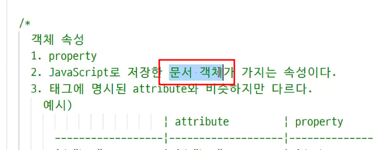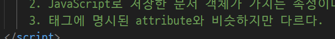 - properties(객체속성) : 자바스크립트로 불러들였을때 저장했을때 나타나는 속성