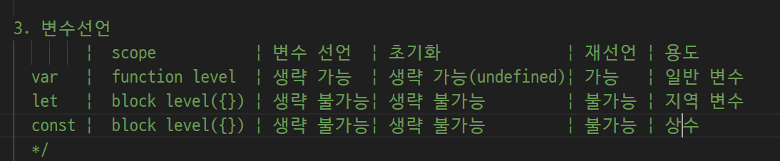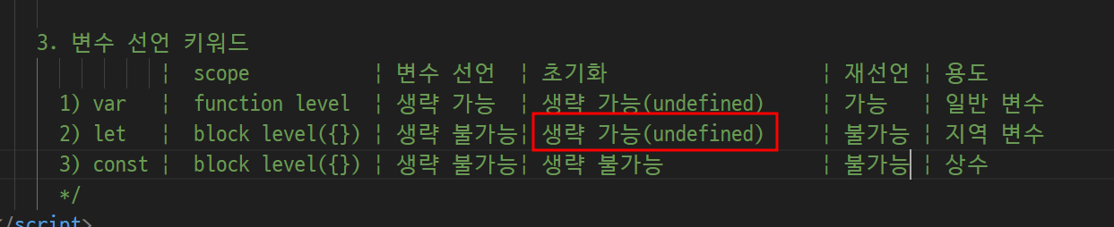 -> let은 초기화 생략 가능은 하지만 undefined 상태