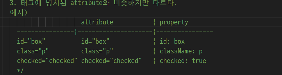 -> 파란색 (뒤쪽에 적은게) proporties를 부른것( attribute와 같은 이름을 쓰는 경우가 대부분이지만 다른 경우와 쓰는 경우도 있음)