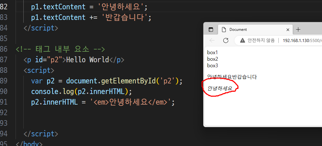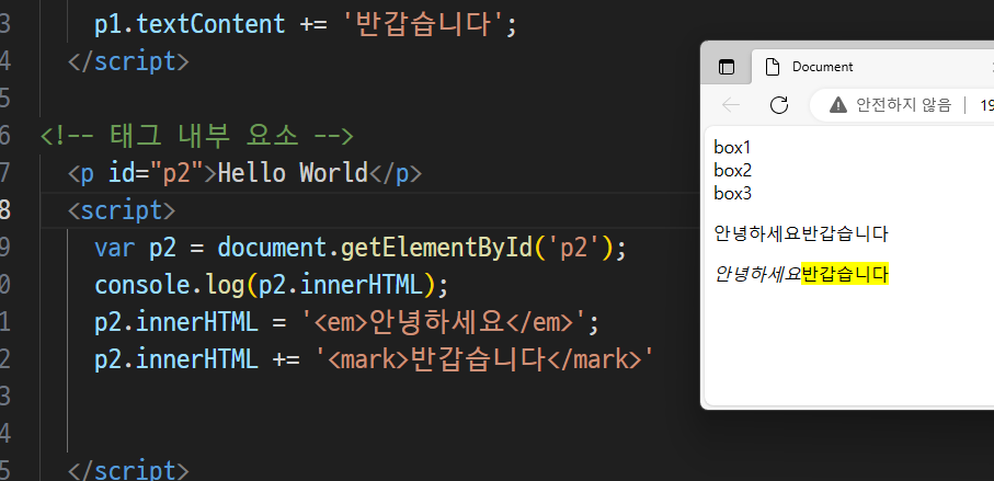 -> div태그 전체가 가지고 옴(태그채로 가지고있음)