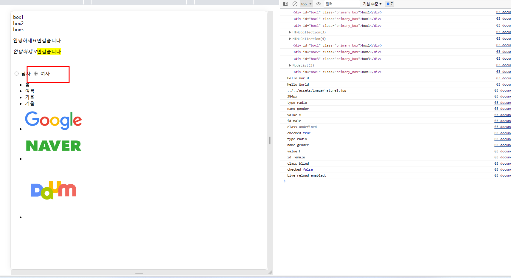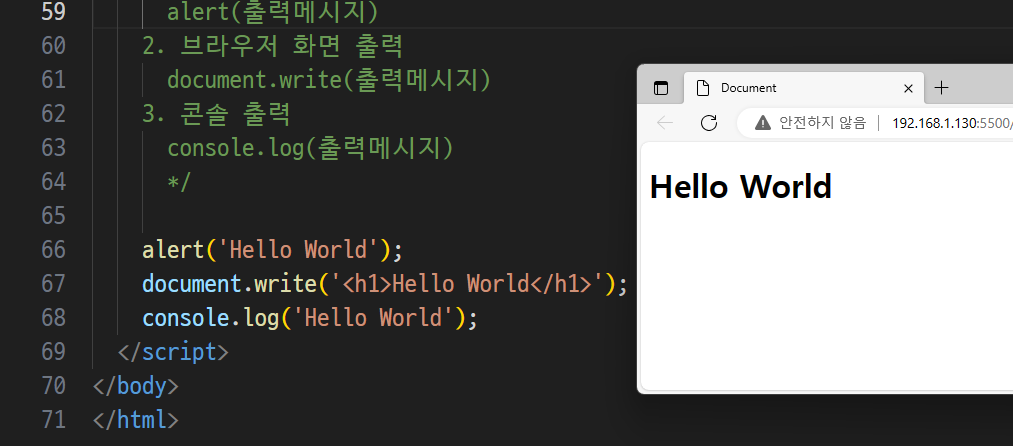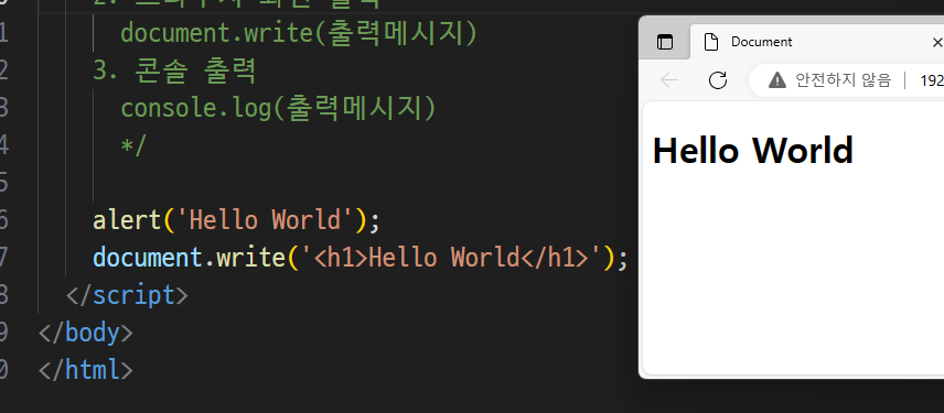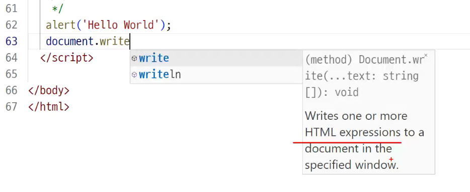 -> document객체의 write 메소드