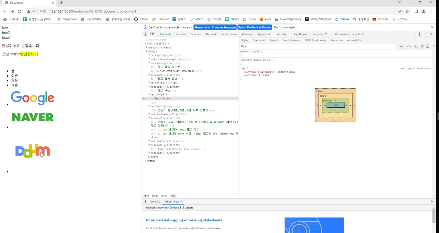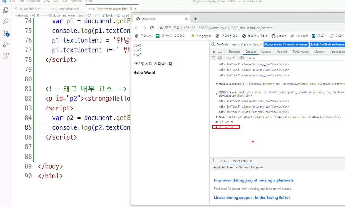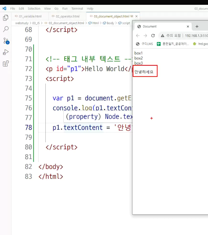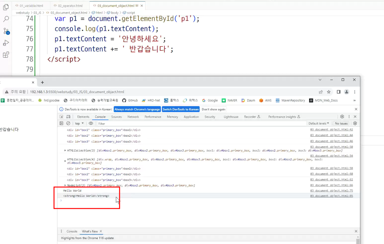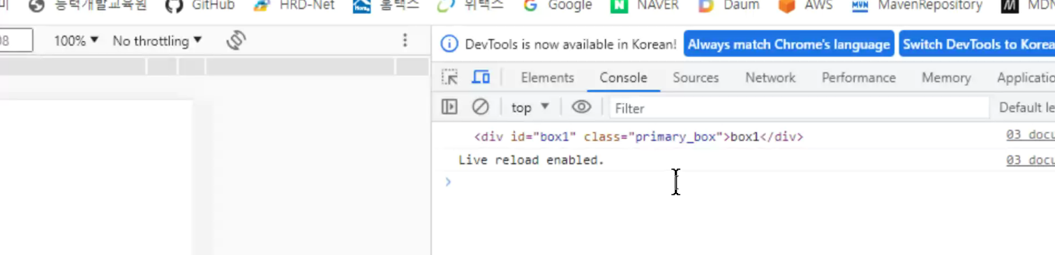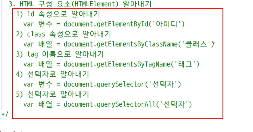 => javascript가볍게 돌리고자 j.query 가 나옴(최종적으로 j.query배우는것이 목적임)