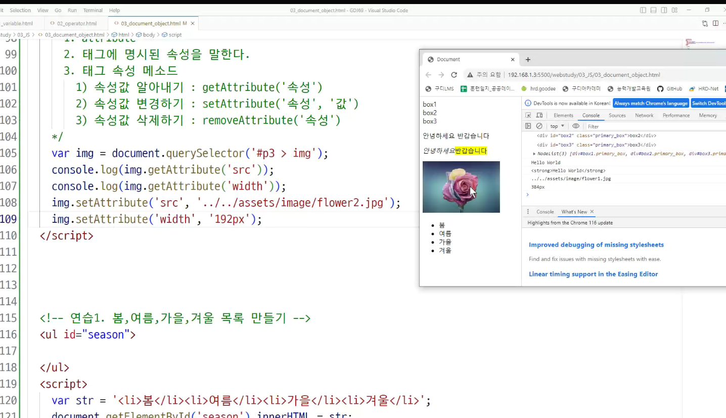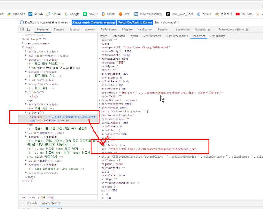 html을 그대로 가지고 와서 객체로 저장할때 속성들이 변환되서 드렁옴(id 속성, src속성,width속성도 다 변환되서 들어옴)