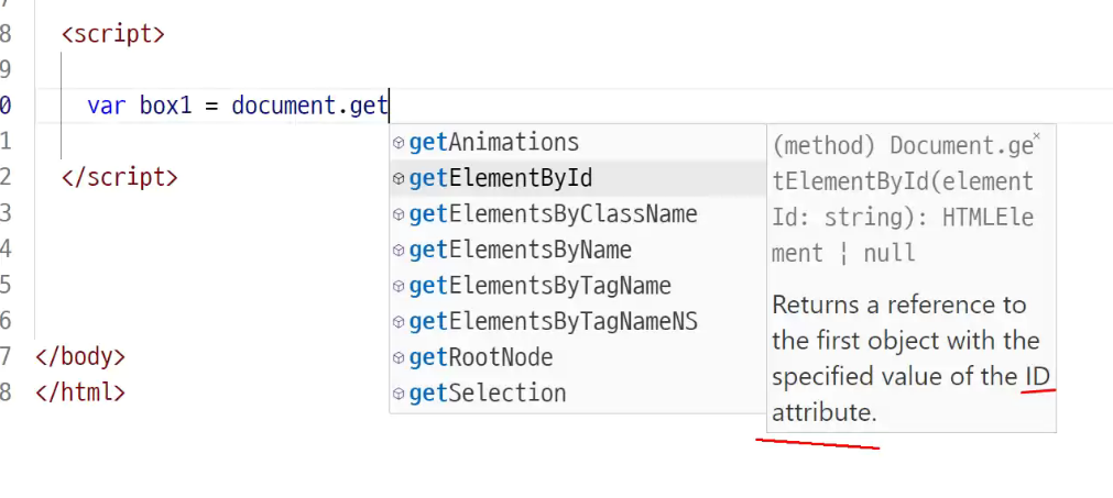 -> ID 속성을 가지고 (혹시라도 동일한 ID를 여러개 만들면 첫번째 ID만 가지고 오겠음)