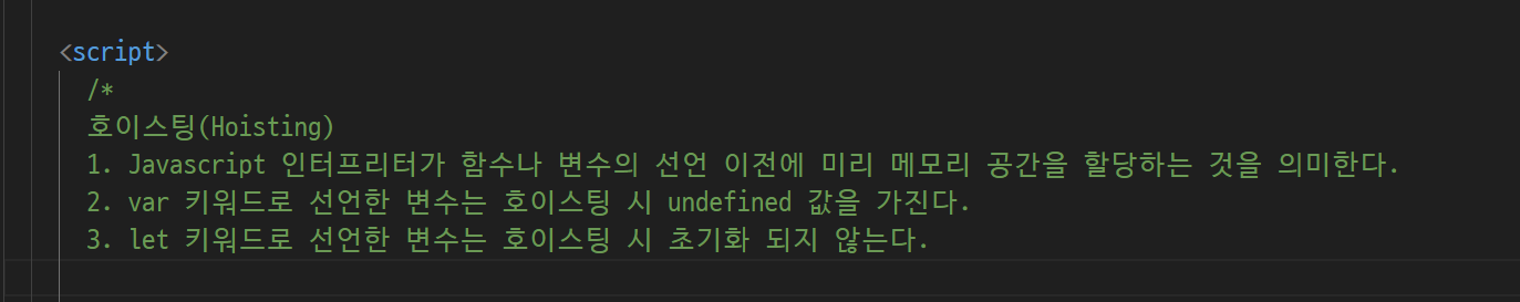 (hoisting에 의해서 선언부만 따로 빼고, 값을 넘는 대입부를 따로 함)