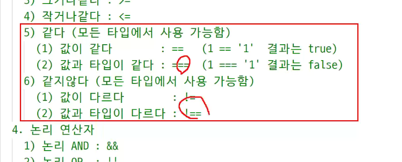 -> 자바처럼 쓸거면 !== 쓰기!