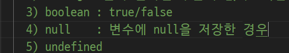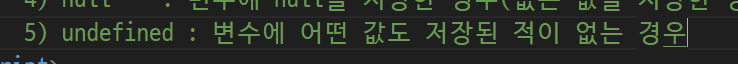 -> (자바스크립트) undefined( 변수에 어떤 값도 저장된 적이 없는 경우)