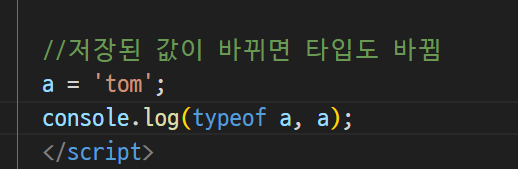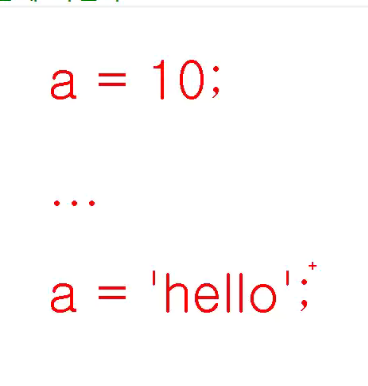 -> (자바스크립트) 저장할때 타입이 결정 (a = 10 -> number 타입 저장, a= hello -> string 타입 저장)