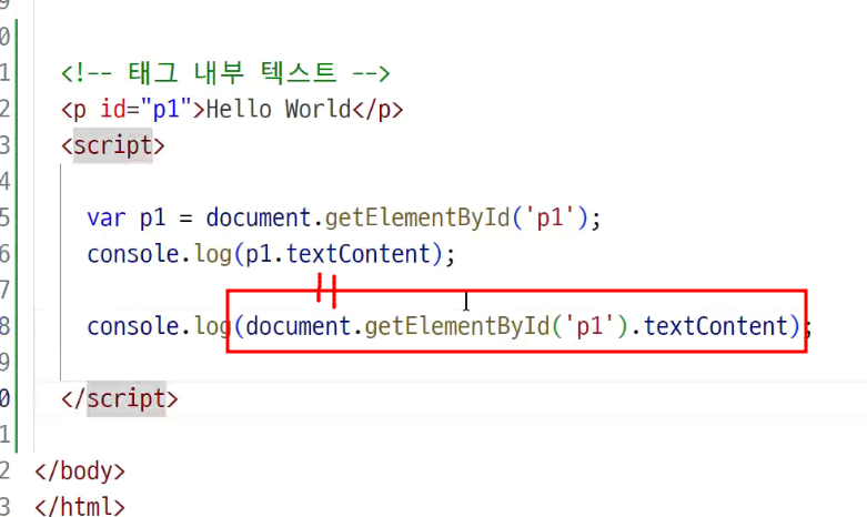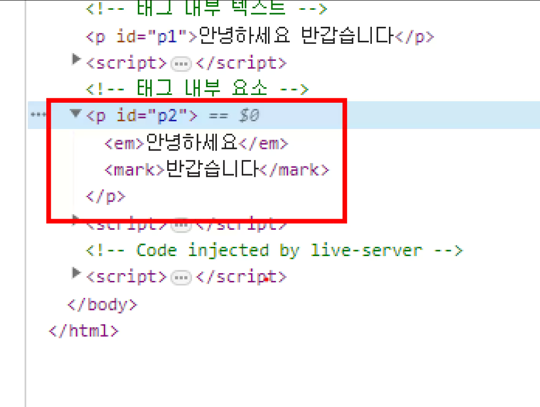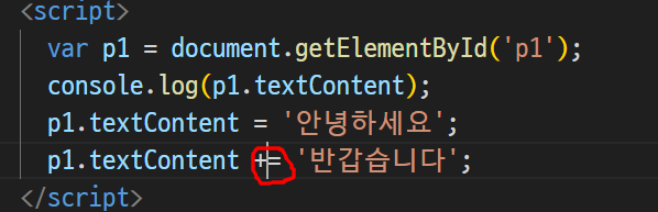 -> p1에 p태그 자체가 저장됨