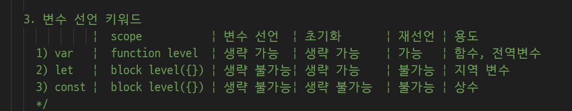-> ESC 가 나오면서 여러가지 형태 var/let/const 여러가지 생김