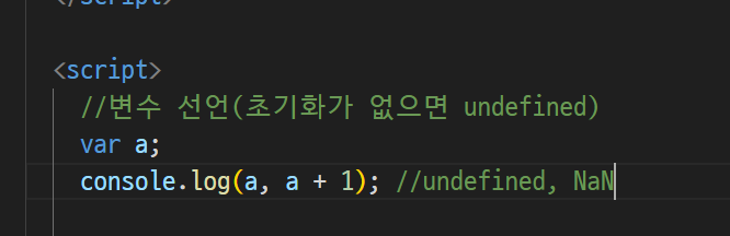 -> undefined + 1(a에는 어떤 값도 저장될 수 없다)