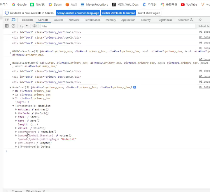 -> 결과는 같은데 Nodelist라고 이름만 바뀜