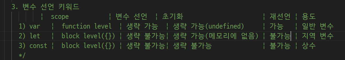 -> 우리가 알고 있는 자바 특성을 가지고 있는 것 : let, const