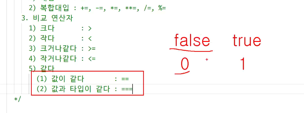 -> false는 0으로 같지만 둘의 타입은 다르다