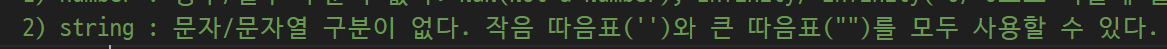 char 묶을때 작은 따음표 string 묶을때 큰 따음표 -> 묶는 규칙 사라짐