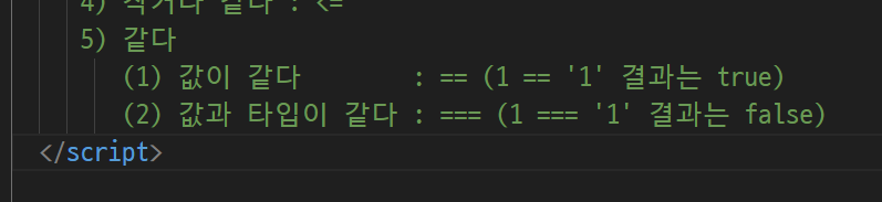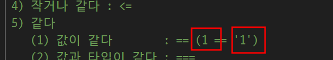 -> 숫자 1 = 문자열 1 같은가?