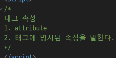 - attribute(태그속성) : 태그에 작성된 속성