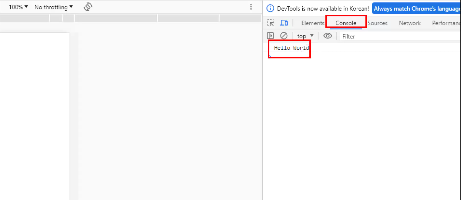 -> console에 Hello World나오는지 확인하기