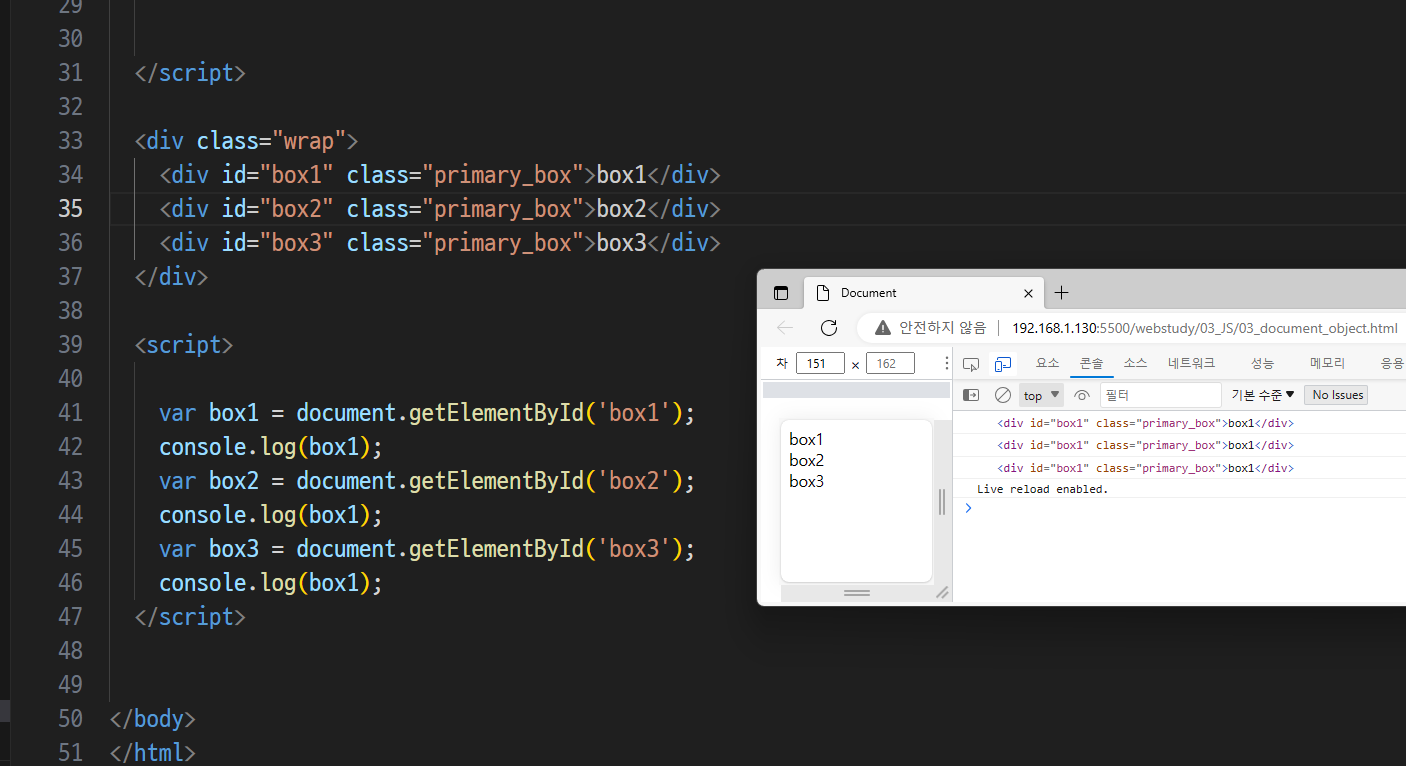 -> script 위 tag아래 -> 인식 x(null값)(순서잘못됨)
