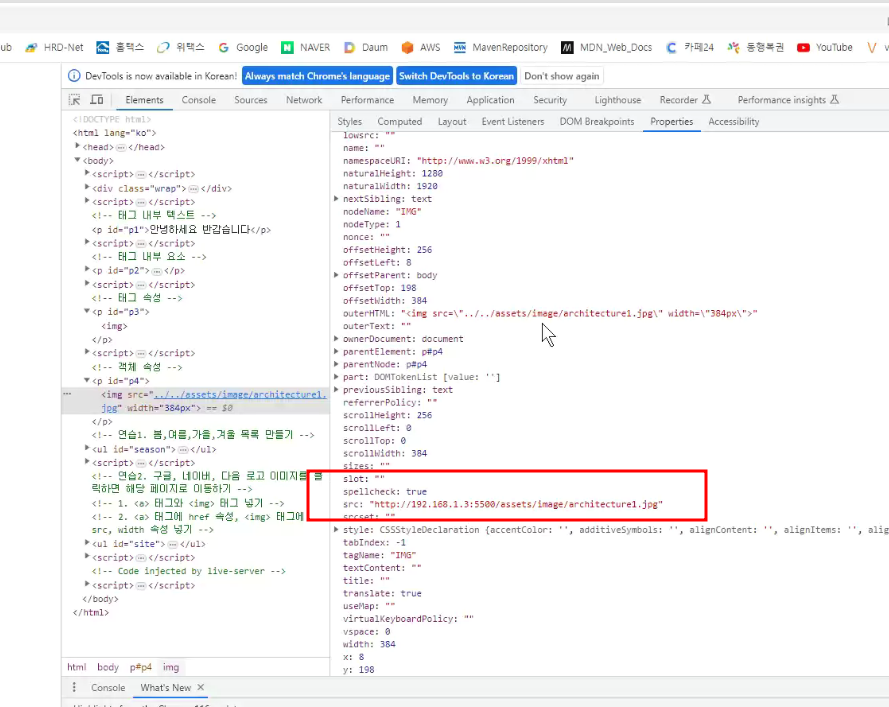 이미지 태그가 문서 객체화 되서 저장될 때 가지는 속성들