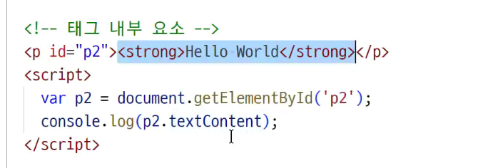 -> tag strong은 빠지고 hello world만 나옴