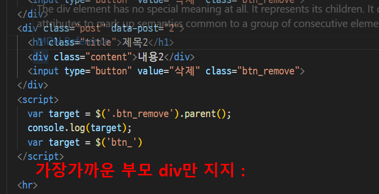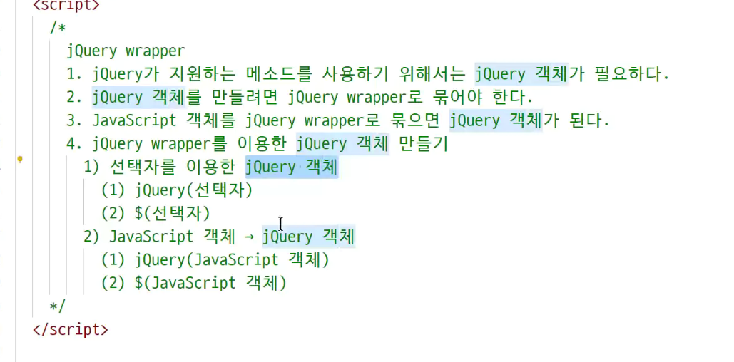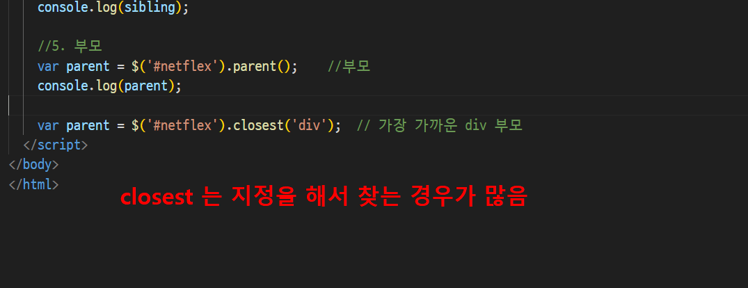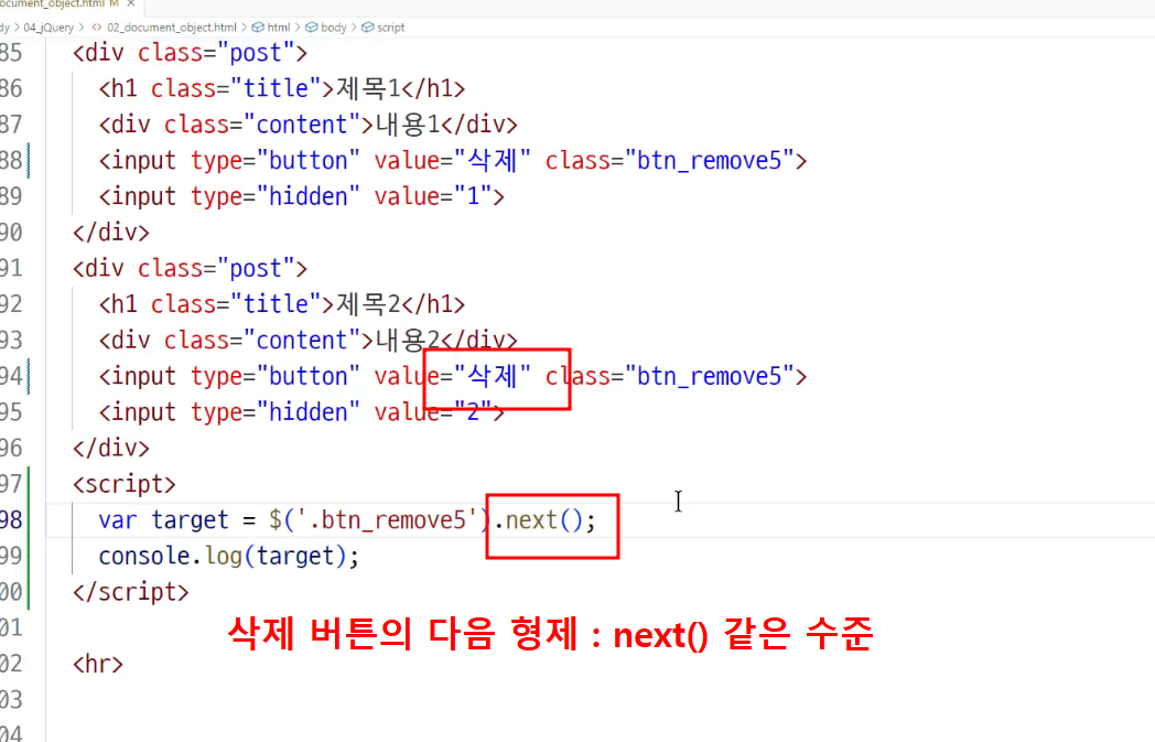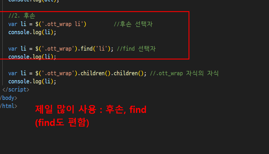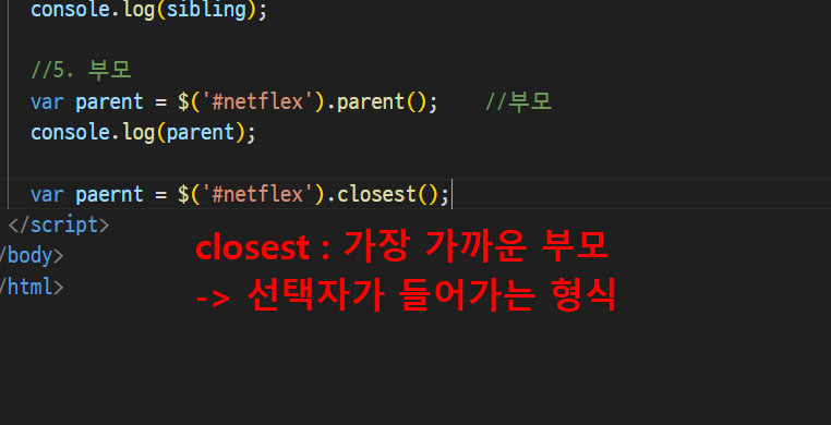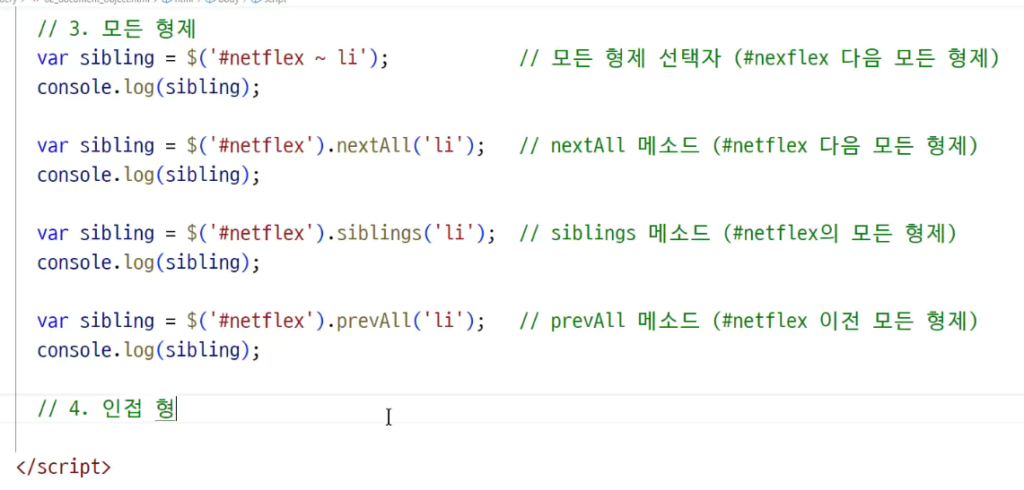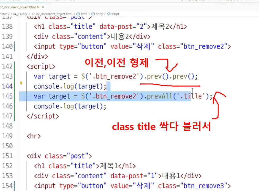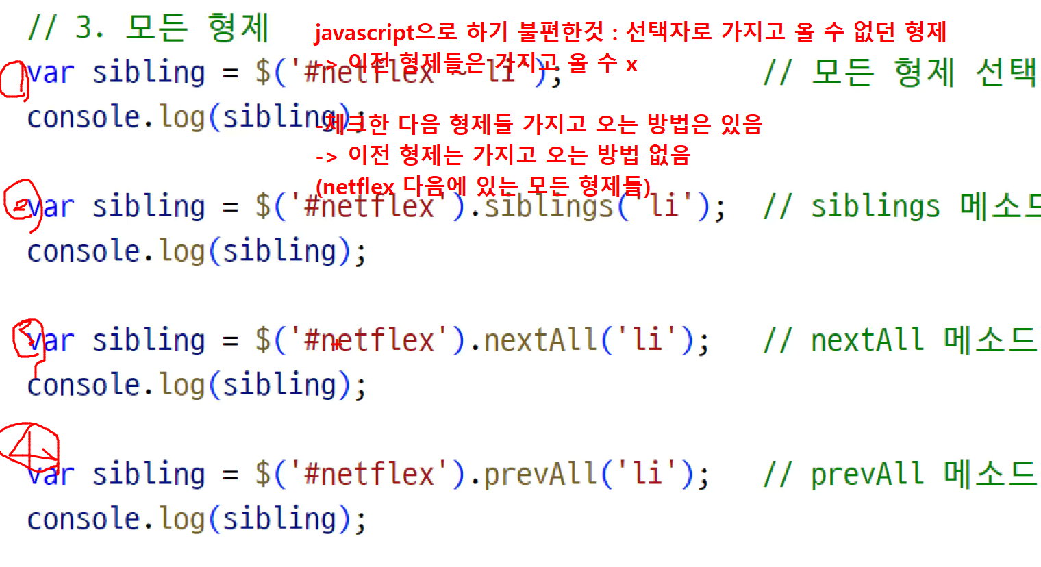 -> 기억안나면 선택자로 하면됨(다만, 이전은 선택 x -> jquery로 하기)