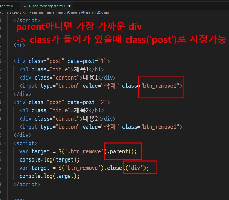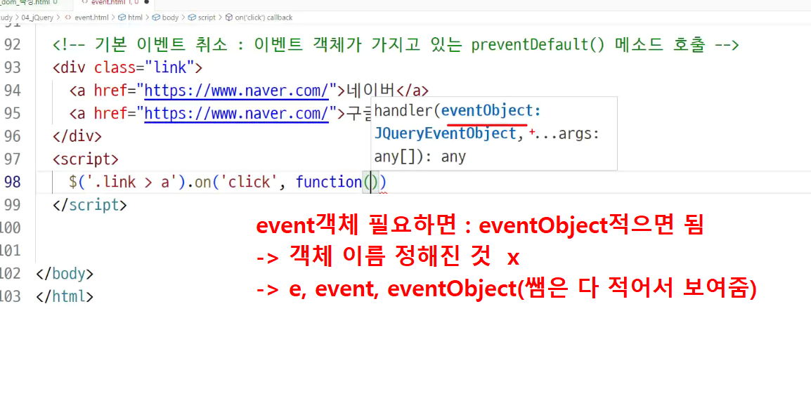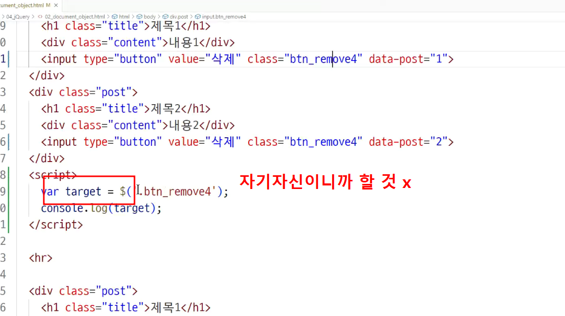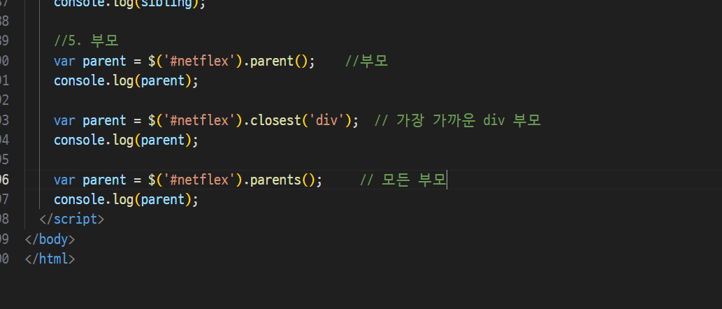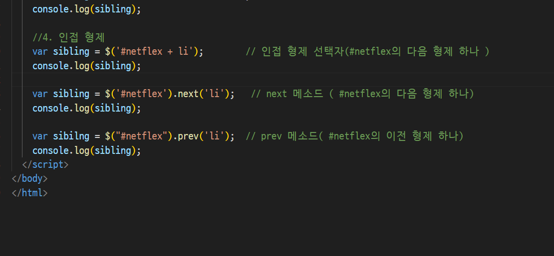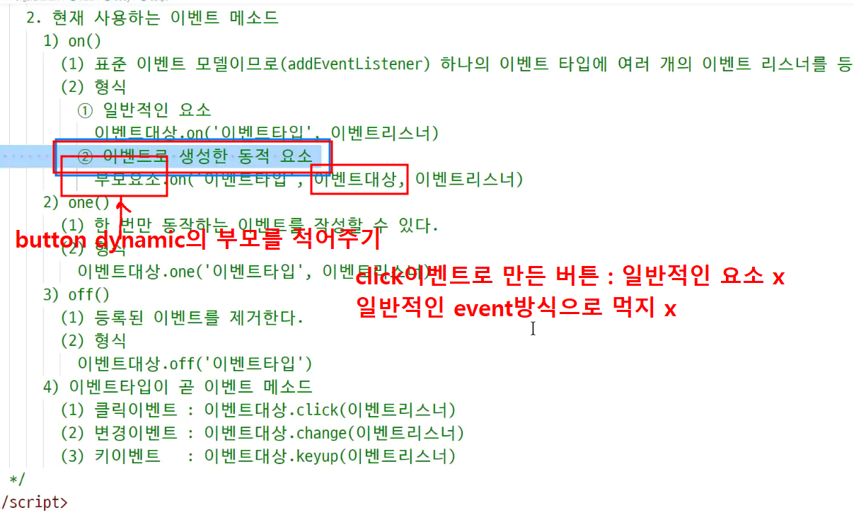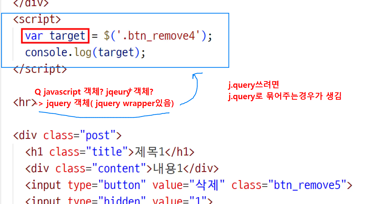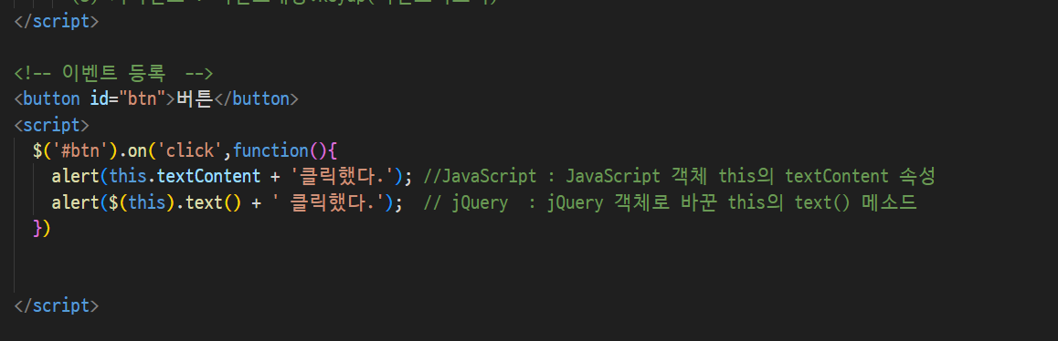 -> 기억안나면 선택자로 하면됨(다만, 이전은 선택 x -> jquery로 하기)