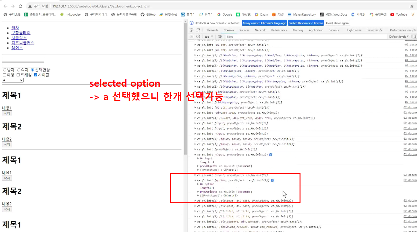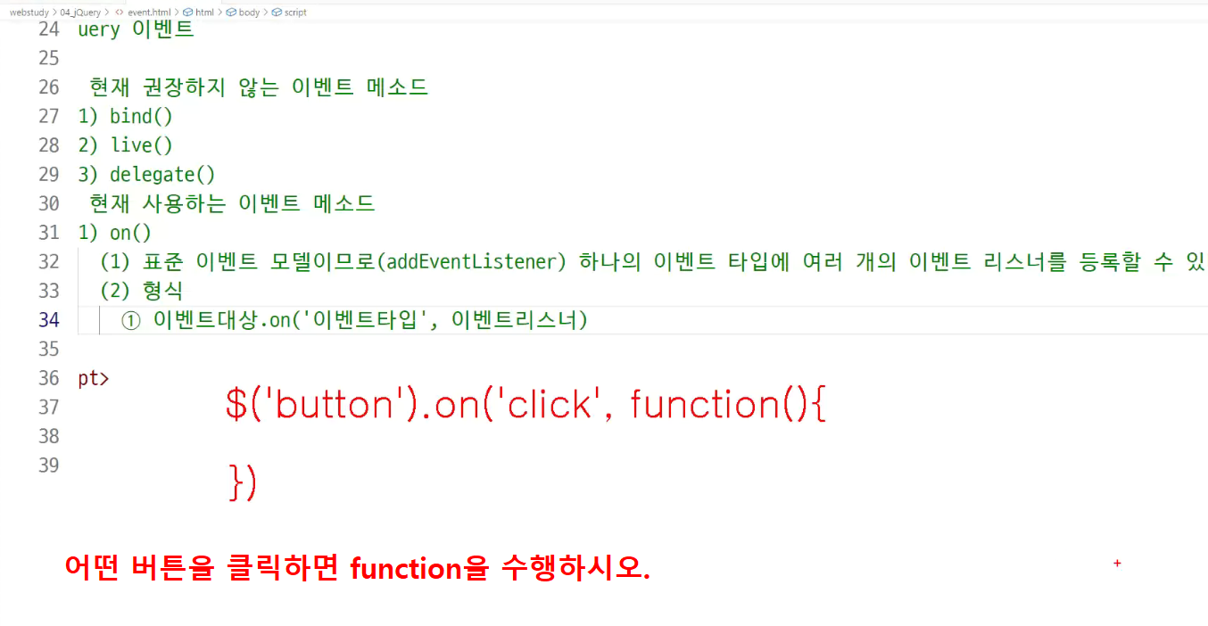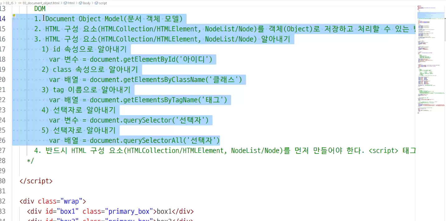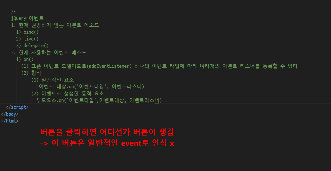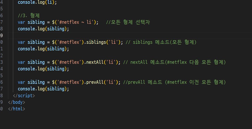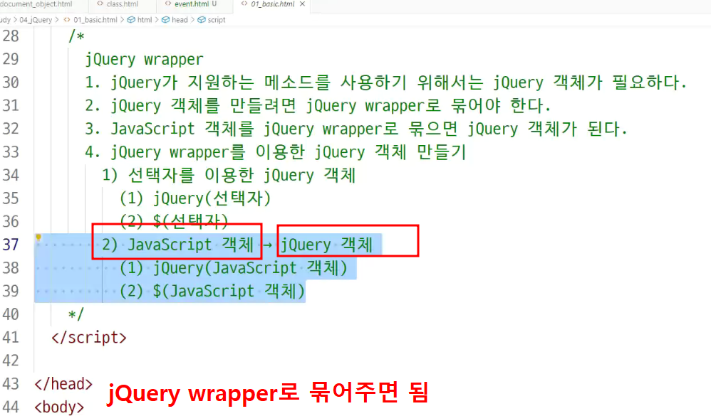 -> 기억안나면 선택자로 하면됨(다만, 이전은 선택 x -> jquery로 하기)