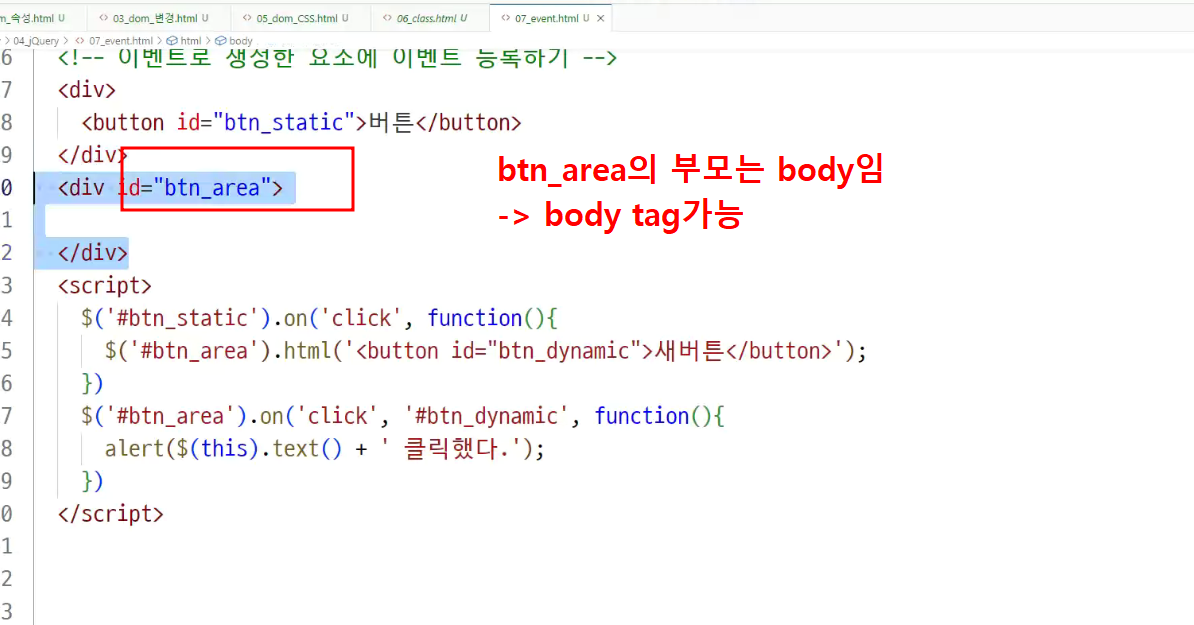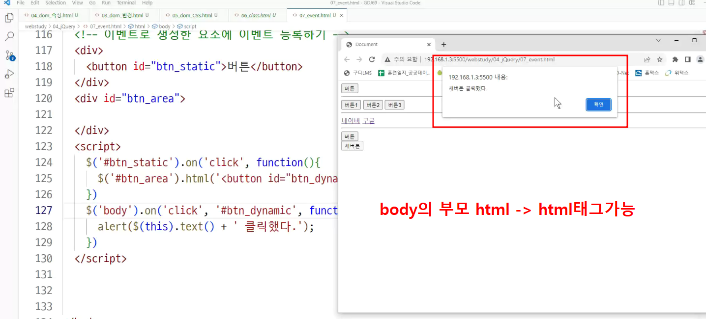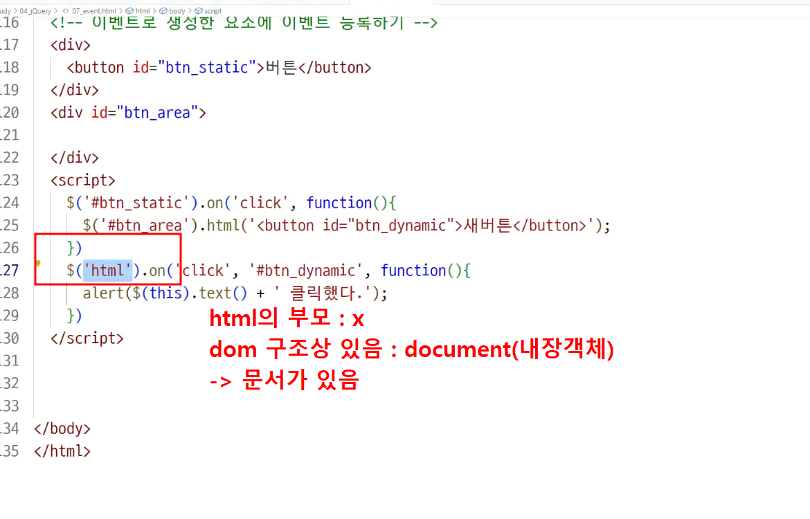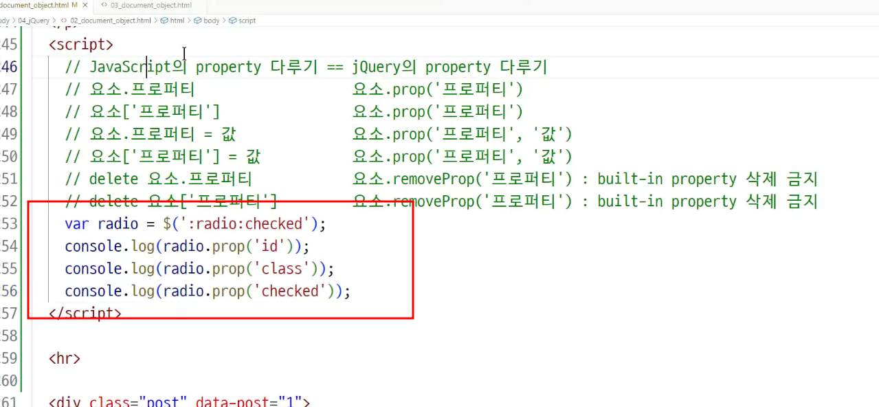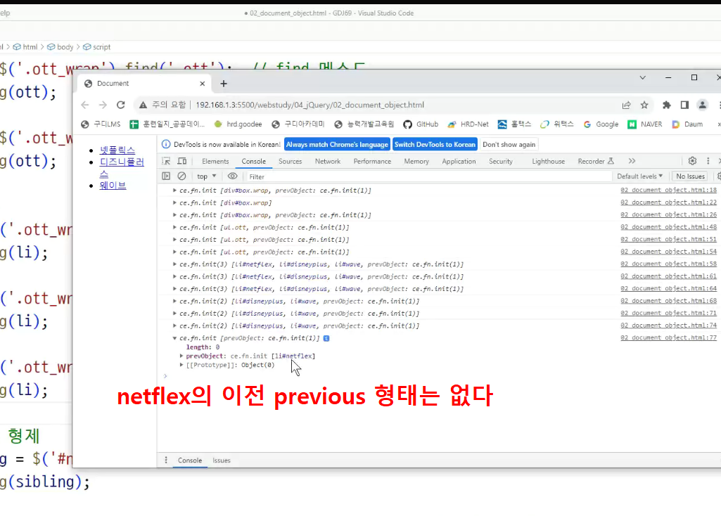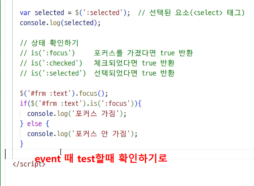 -> 기억안나면 선택자로 하면됨(다만, 이전은 선택 x -> jquery로 하기)