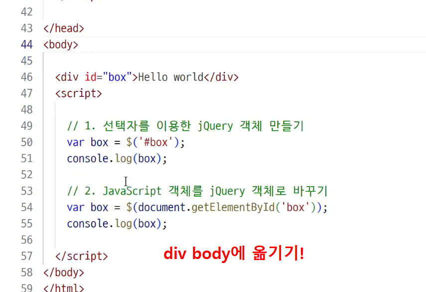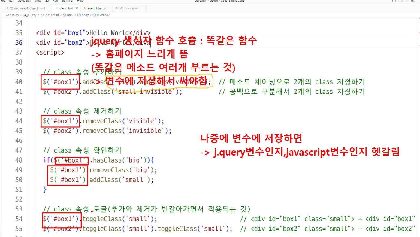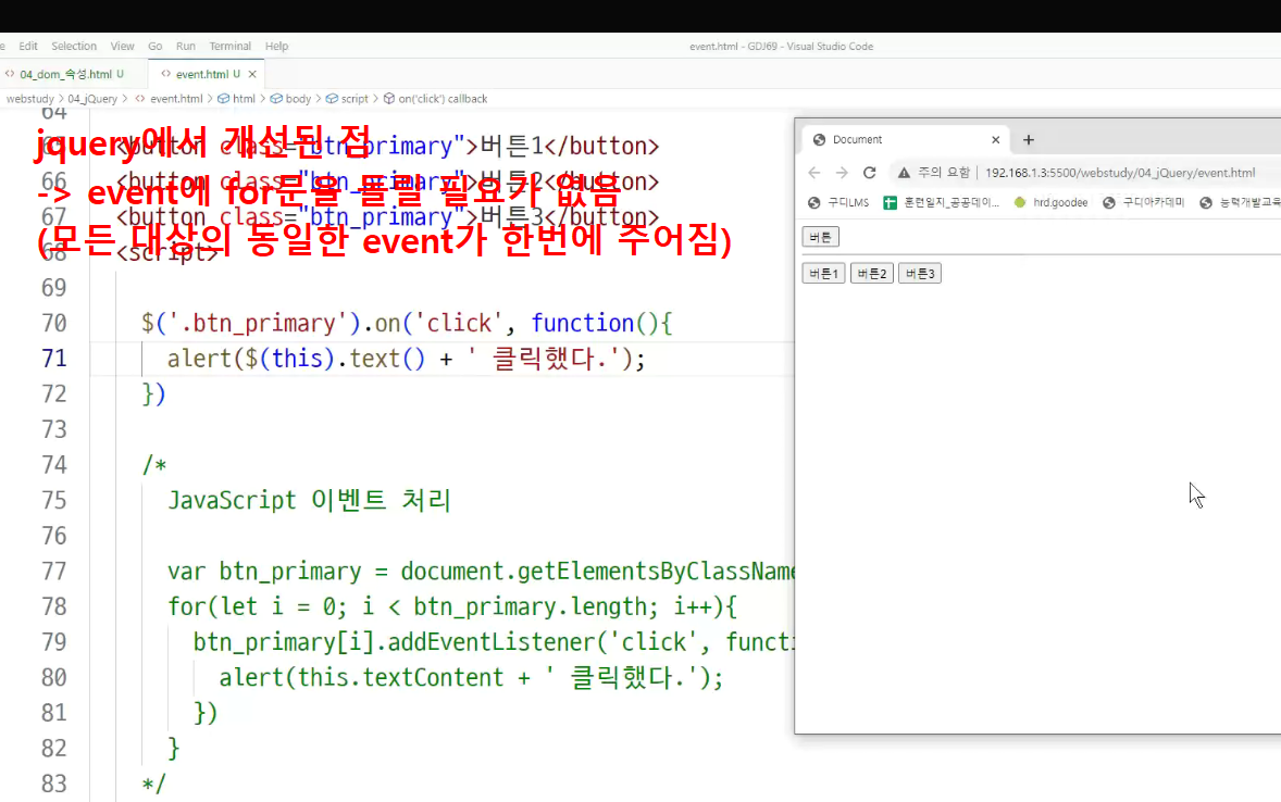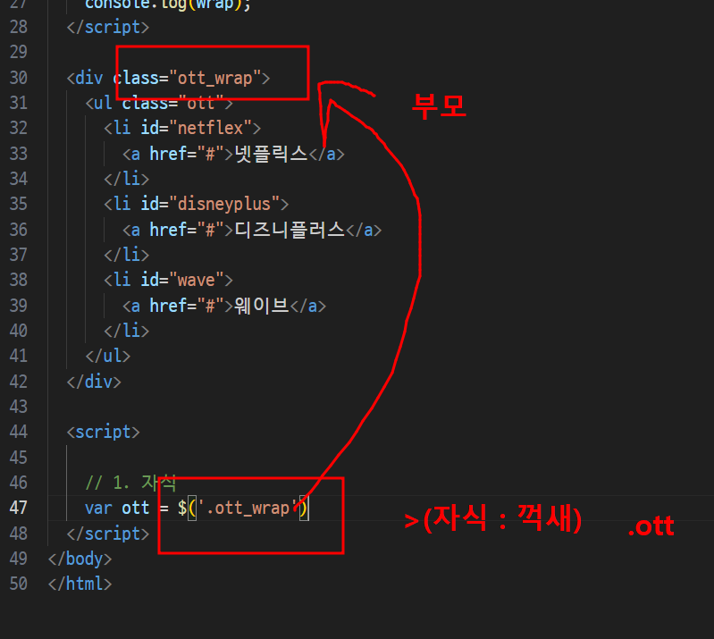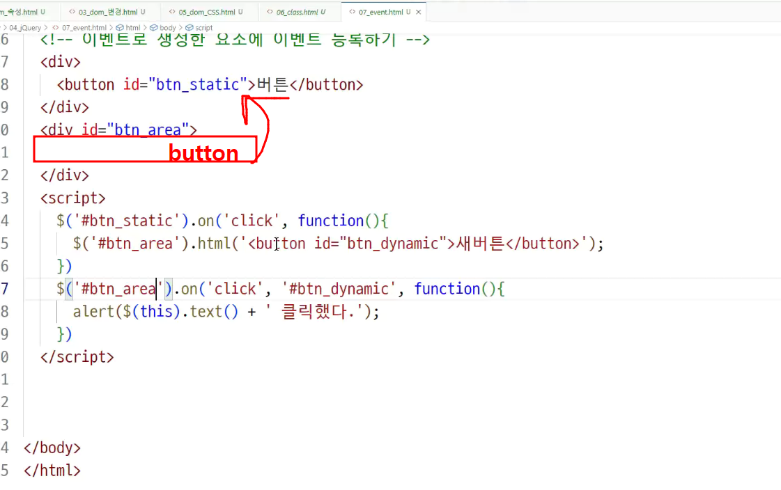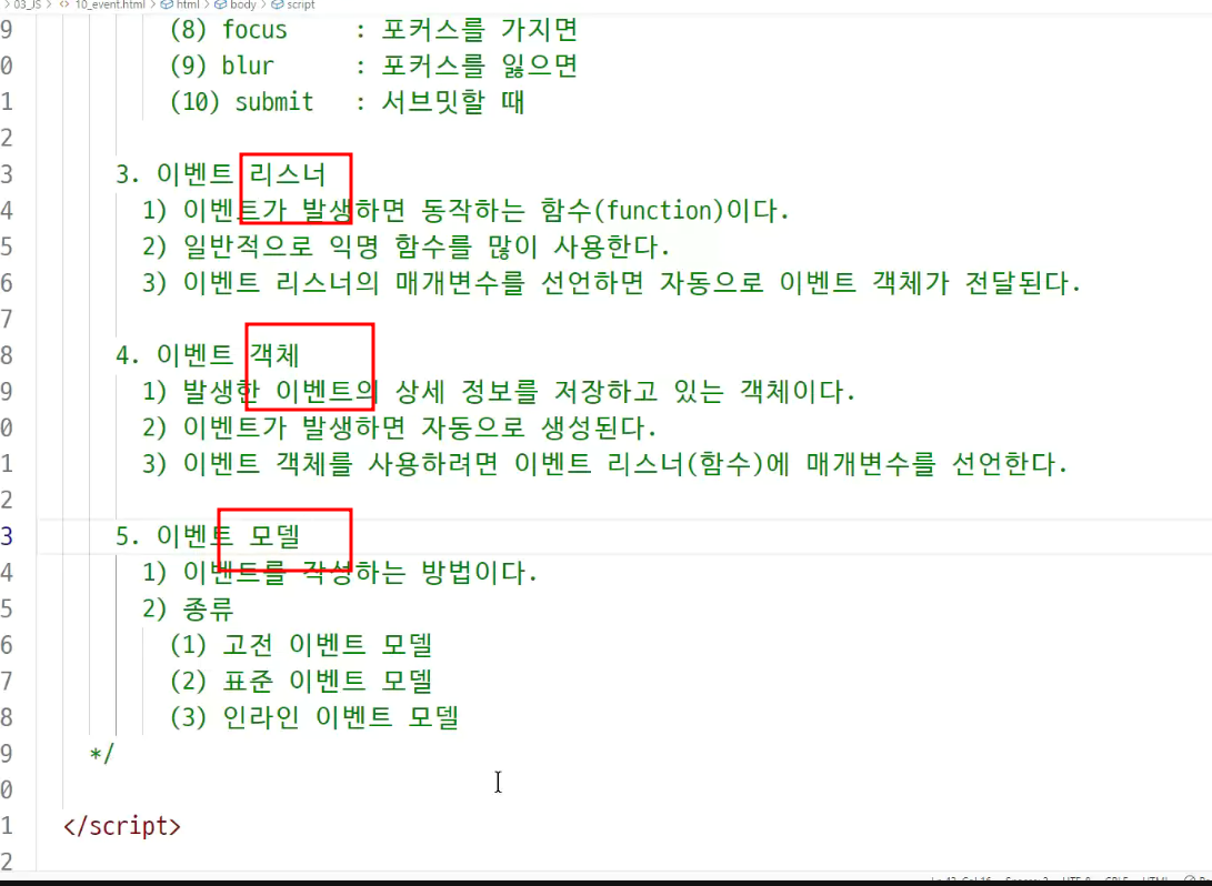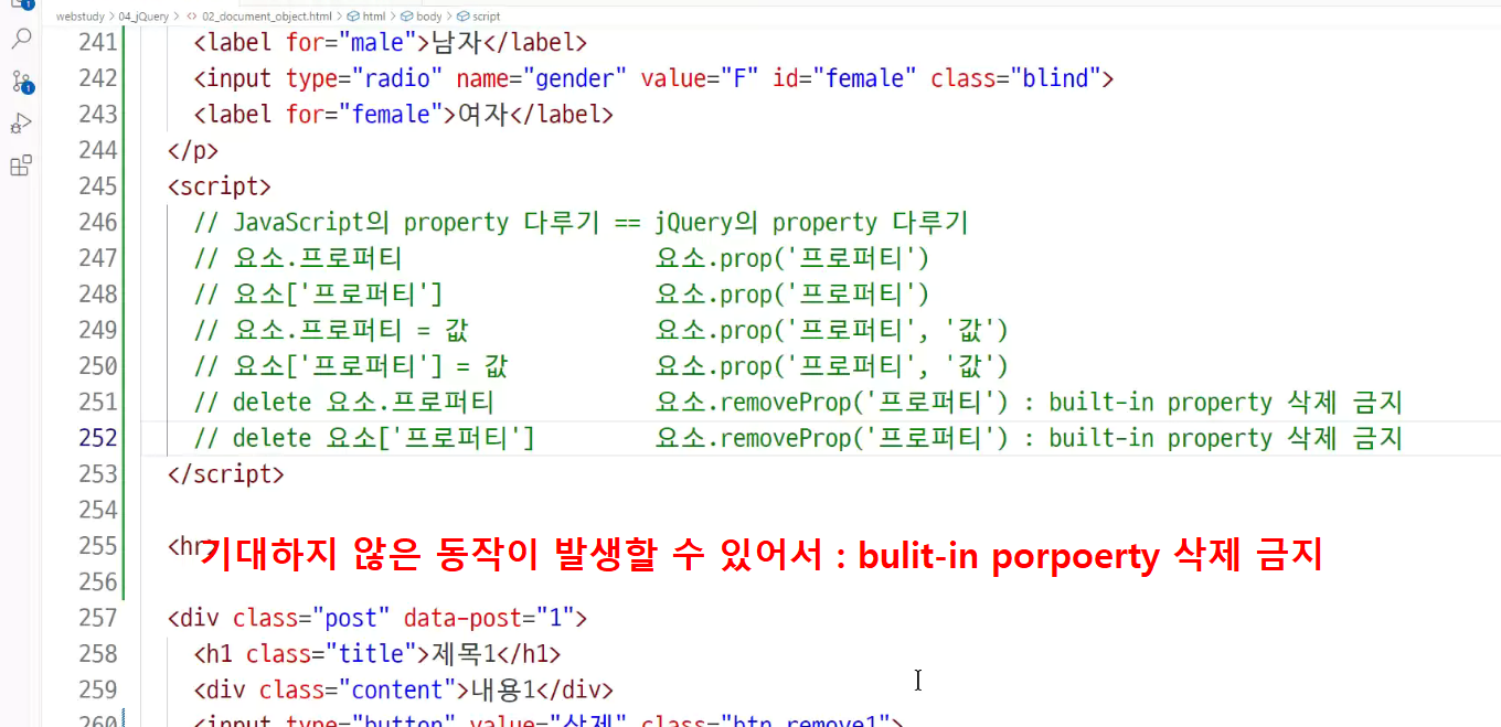 -> 기억안나면 선택자로 하면됨(다만, 이전은 선택 x -> jquery로 하기)