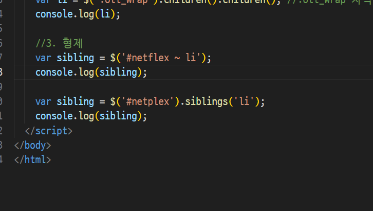 셋째 이전에 있는애, 셋째 다음에 있는애(netlfex 기준 시 : 셋째)