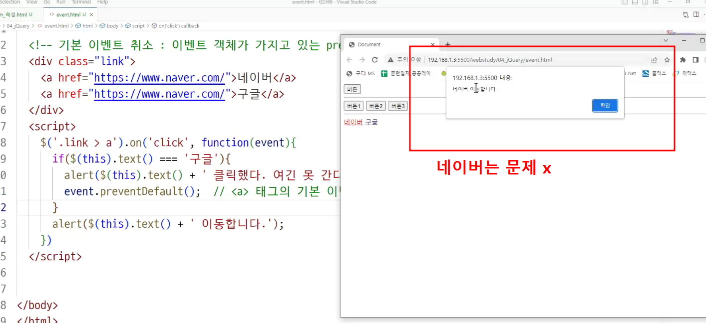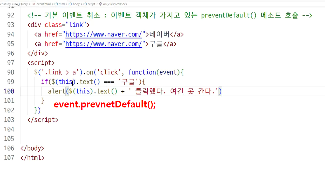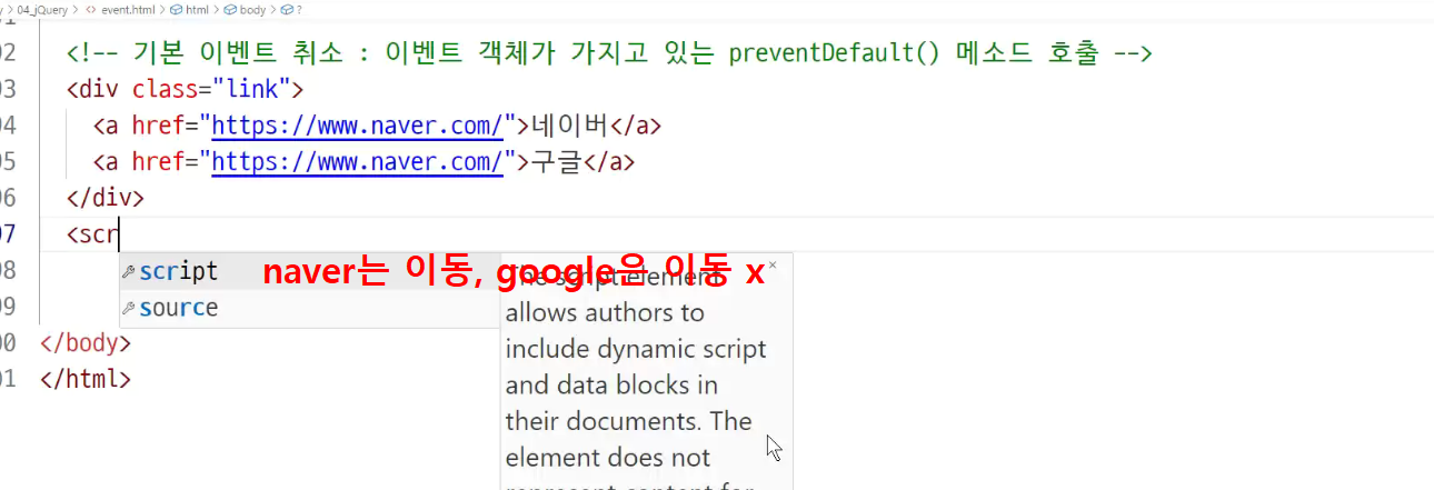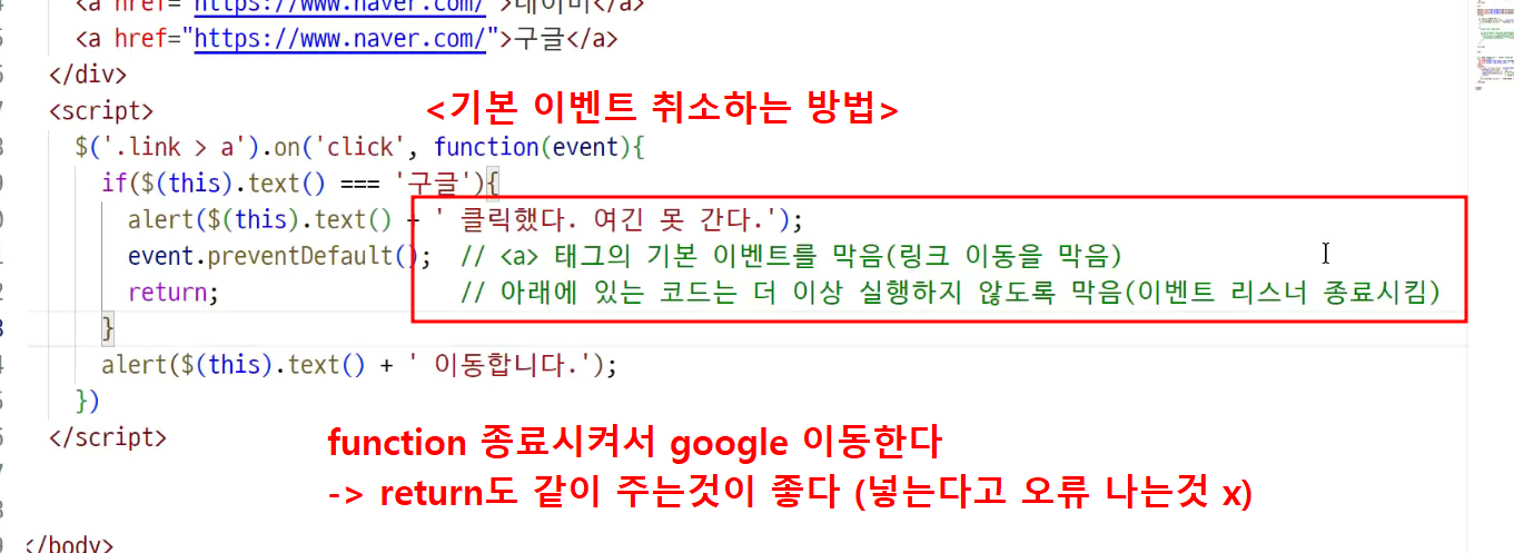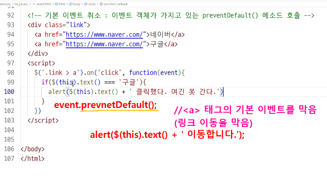 -> a태그는 클릭하면 무조건 이동하게 되어있는데 막을 것