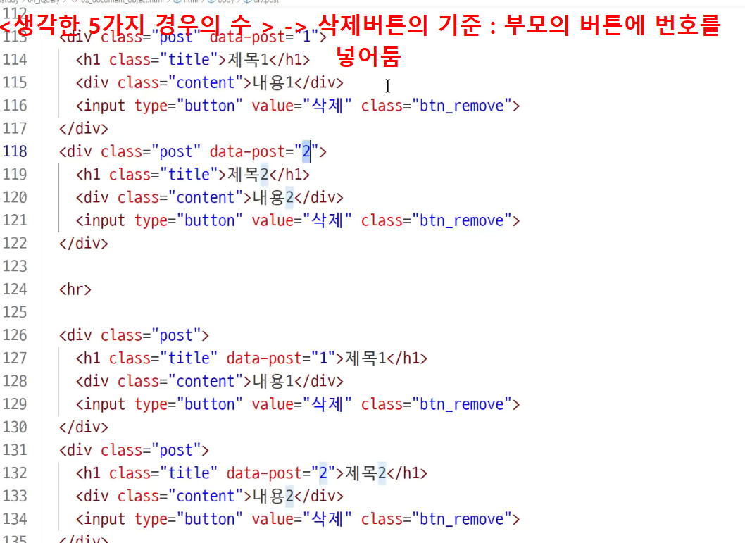 5번째 상황 : button의 다음자리에 input을 집어넣어서 번호를 넣어둠