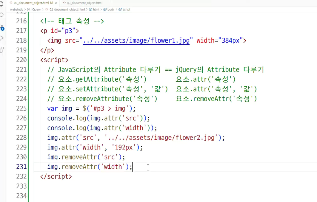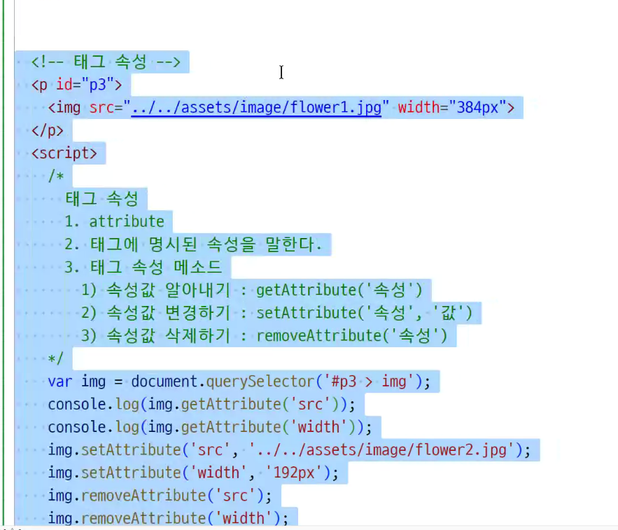 -> attribute 값 가져오는법, 바꾸는법, 지우는법