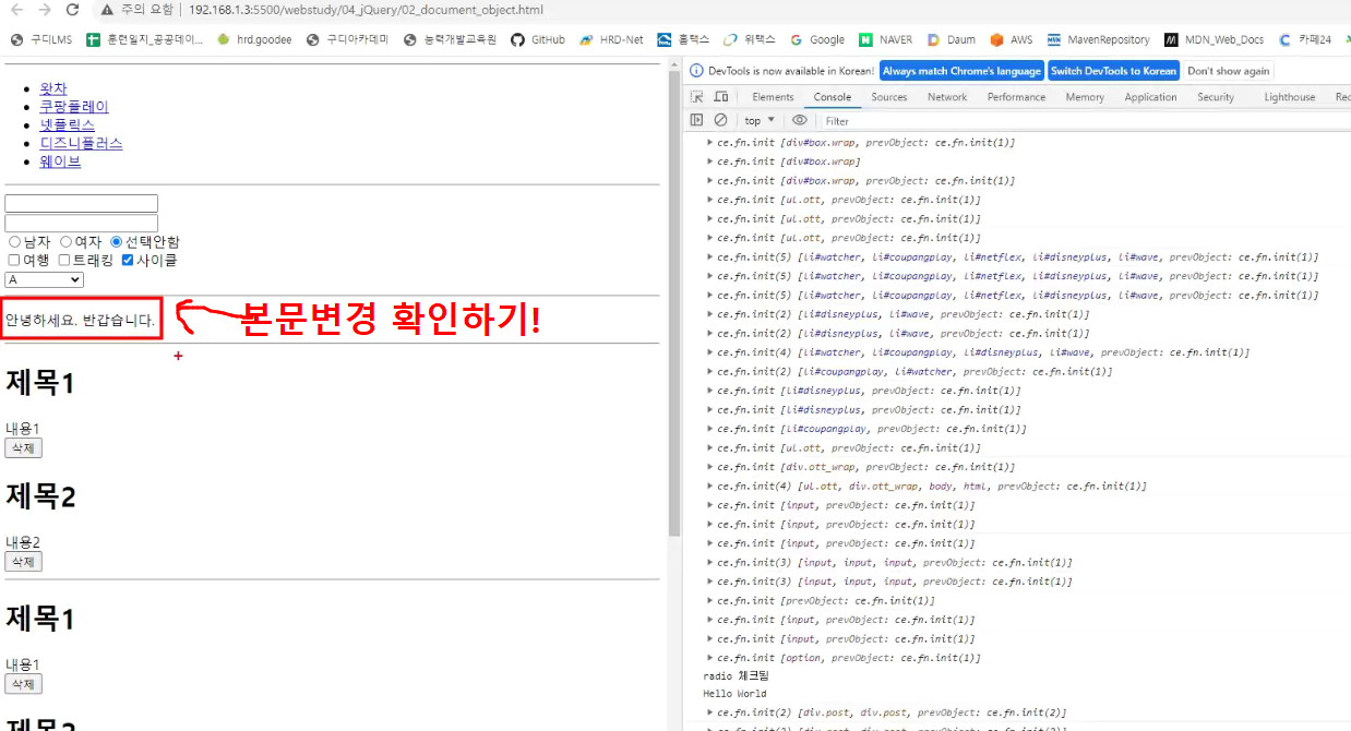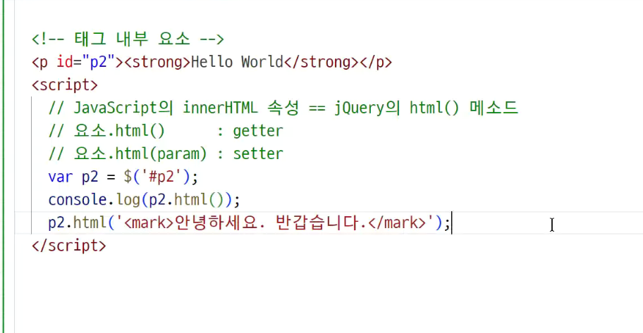 -> 내부 요소 수정하려고 html메소드 사용가능