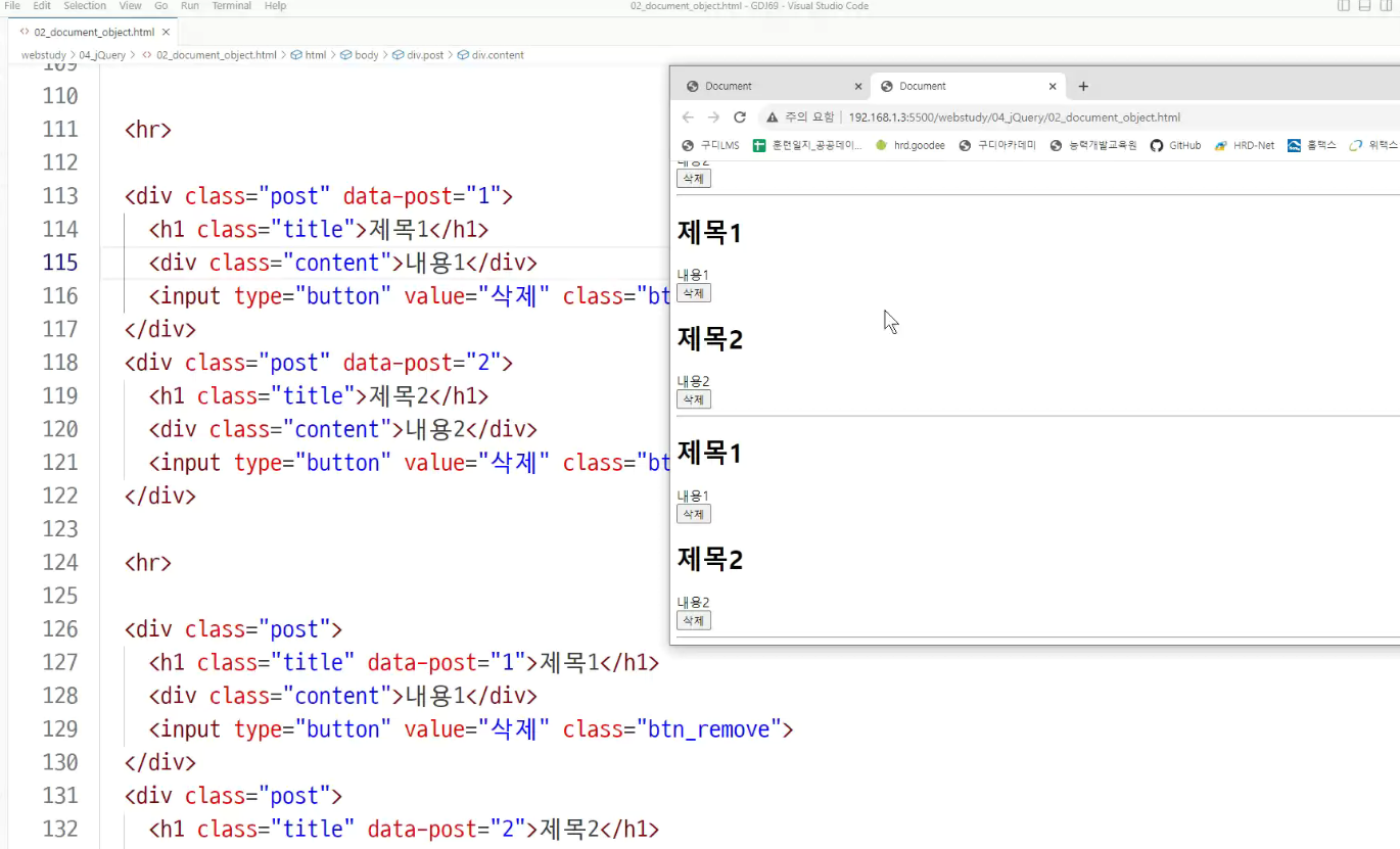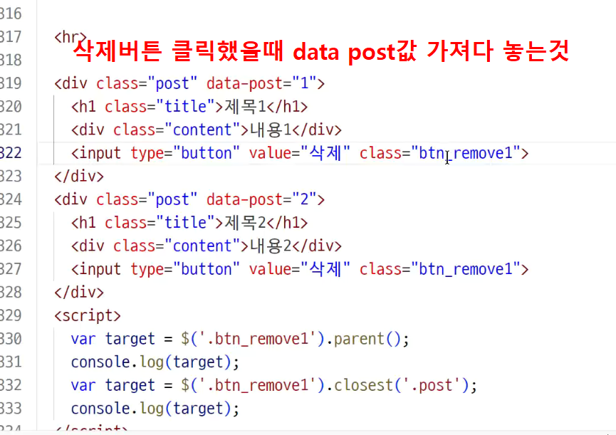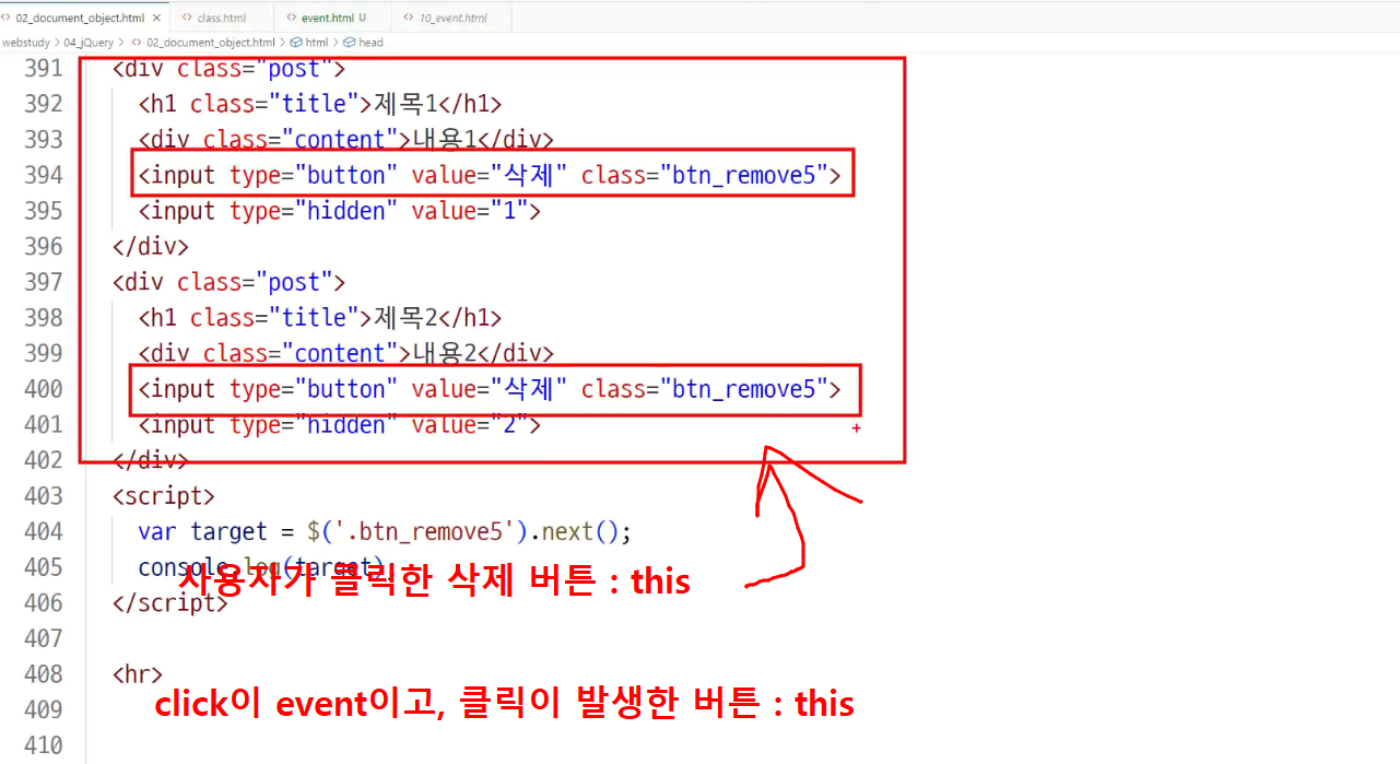 -> 사용자가 클릭한 버튼의 삭제를 진행해야 함