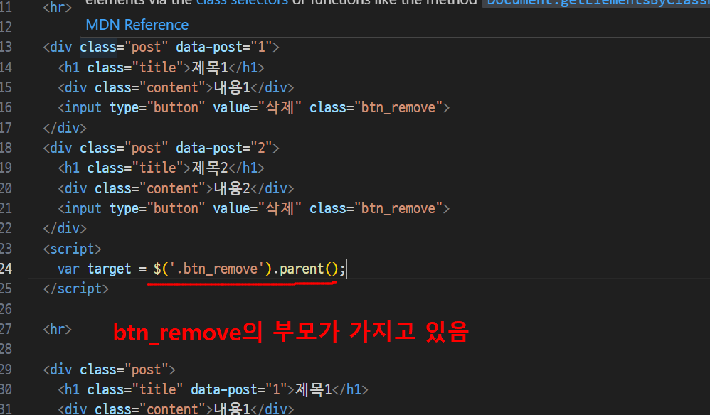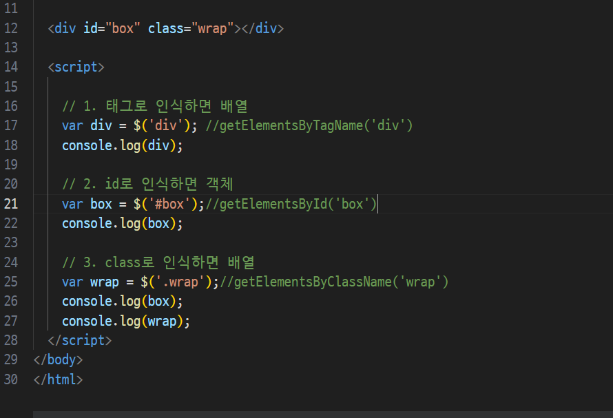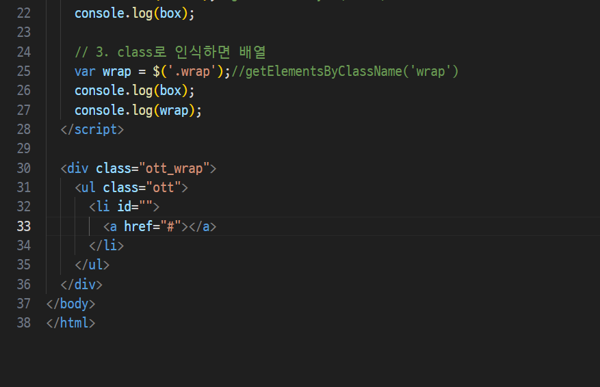 -> 태그로 썼다는 것 (인식했다는것): getelementsbytagname