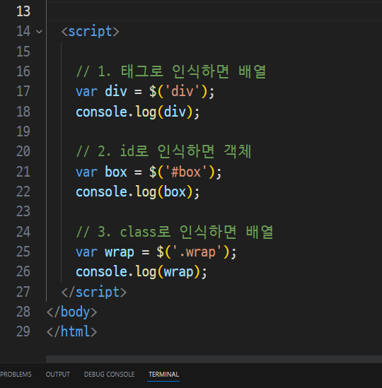 -> 각 태그 밑에 스크립트 하나씩 추가해서