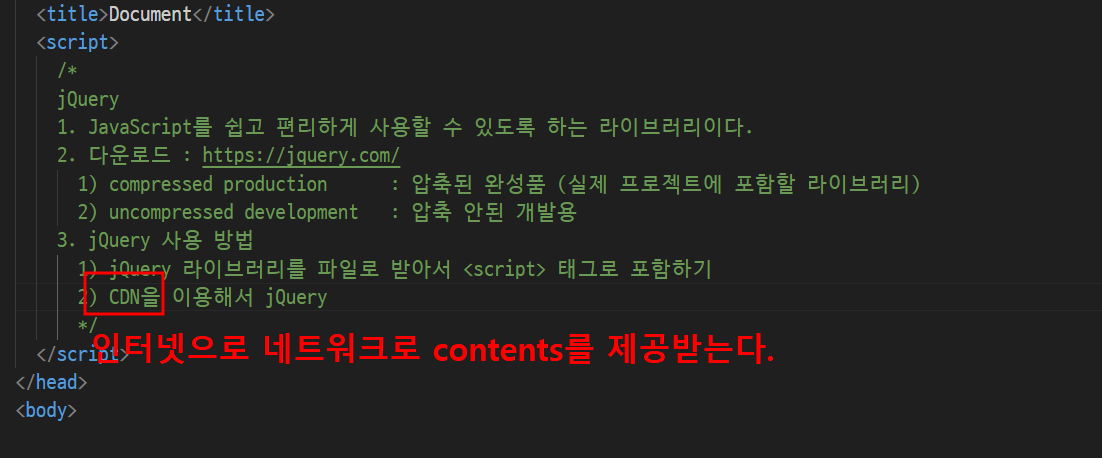 -> 프로젝트마다 다운로드 받은걸 어디에 두는냐에 따라 경로 문제 생길 수 있지만 네트워크 잘 되면 CDN은 어디에나 있을 수 있음